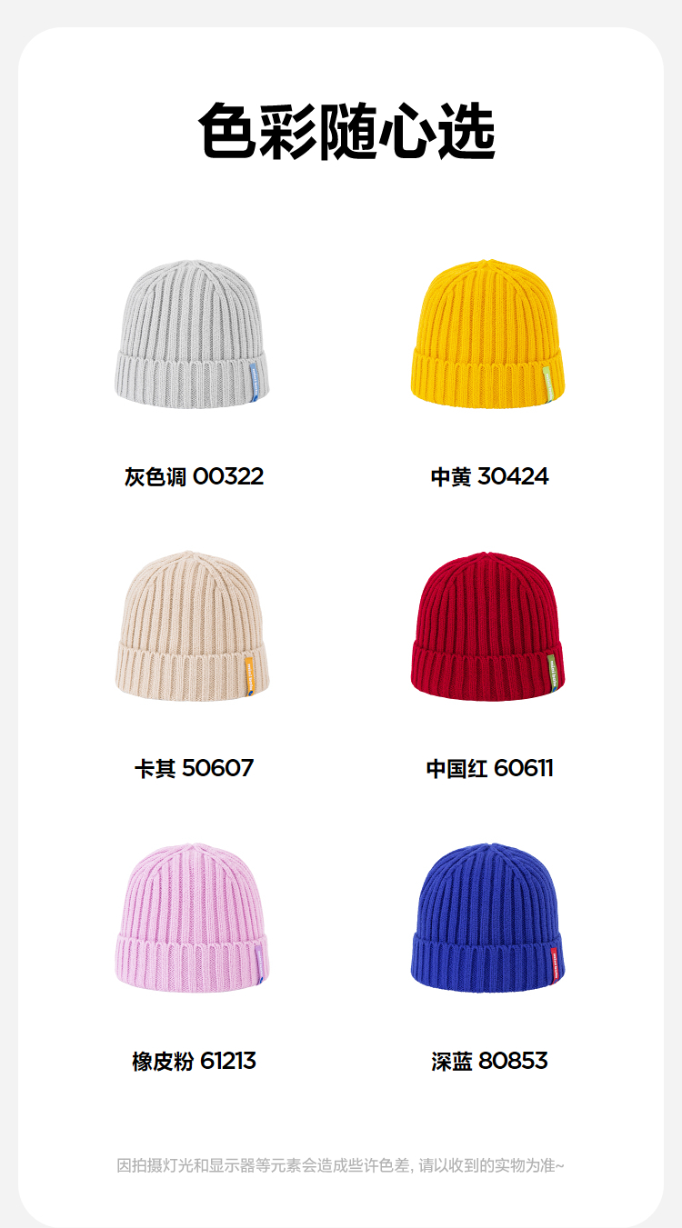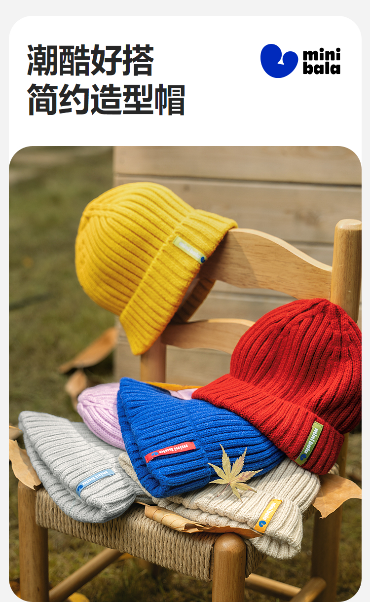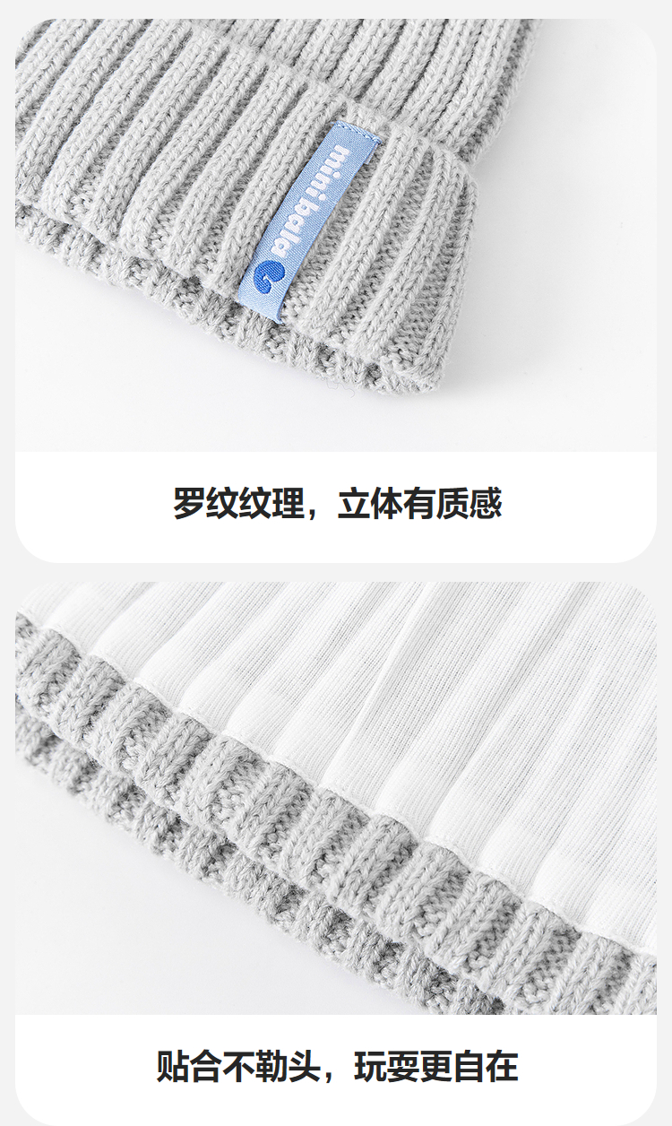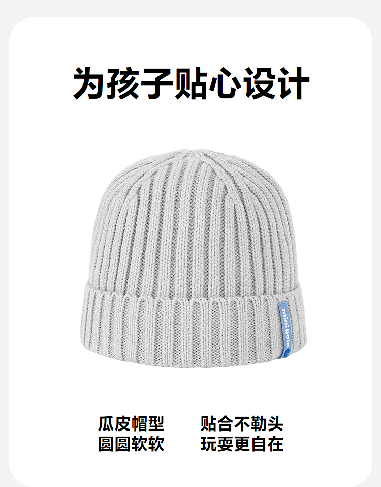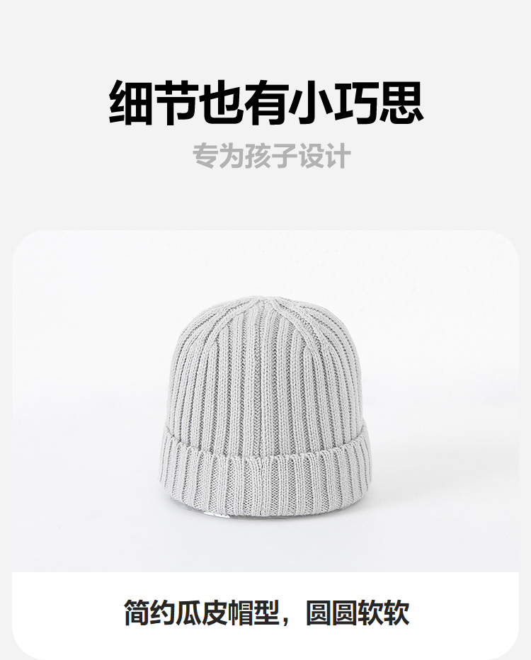 迷你巴拉儿童毛线帽男女童宝宝螺纹纯色简约瓜皮帽子秋冬款