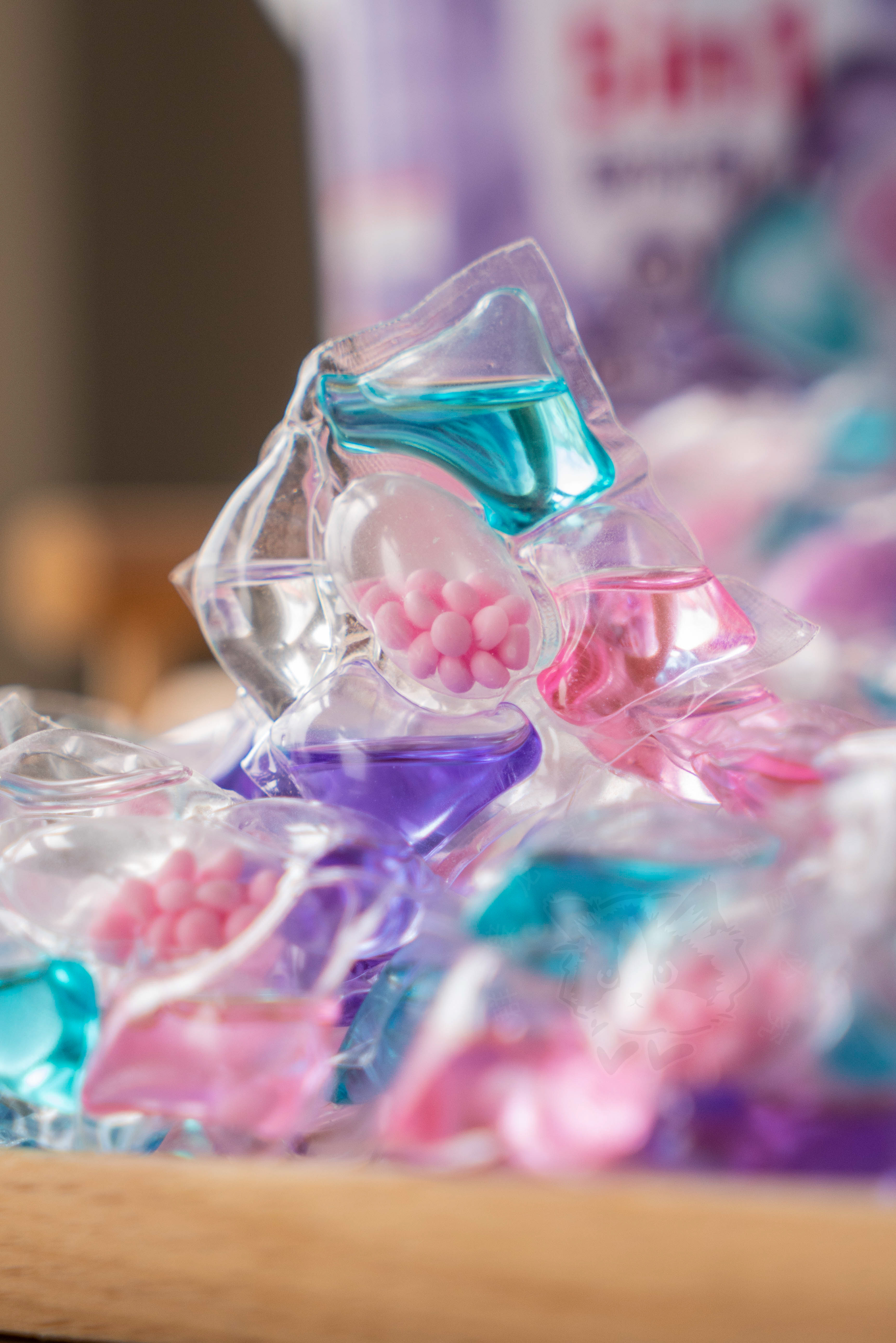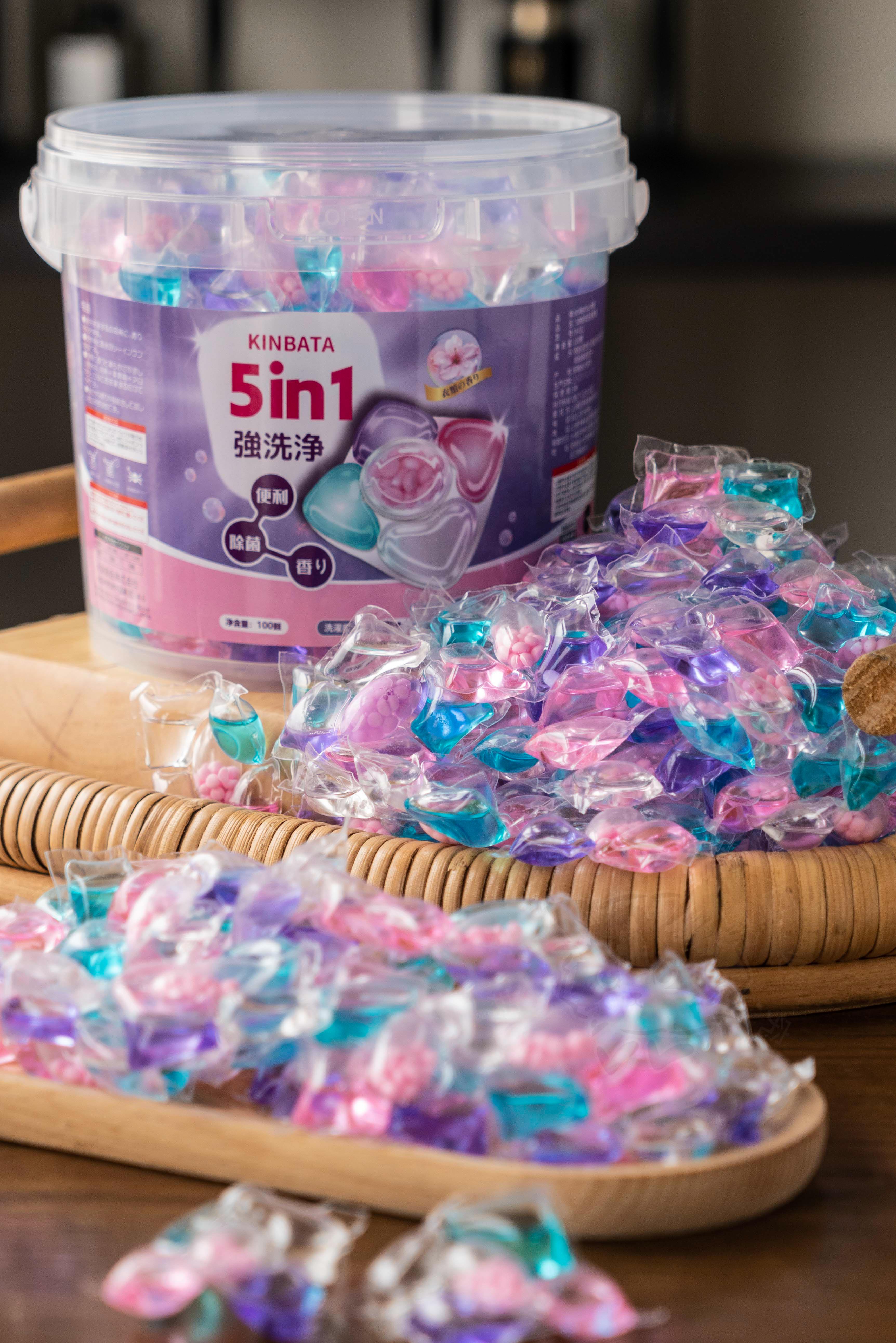 【日本kinbata5D香氛洗衣凝珠】 ✅一颗=洗衣液+柔顺剂+留香珠+除菌液+固色剂 ✅99.9%除菌抑菌率 ✅10倍清洁力,一颗能洗6-7件脏衣服 ✅0荧光剂、增白剂