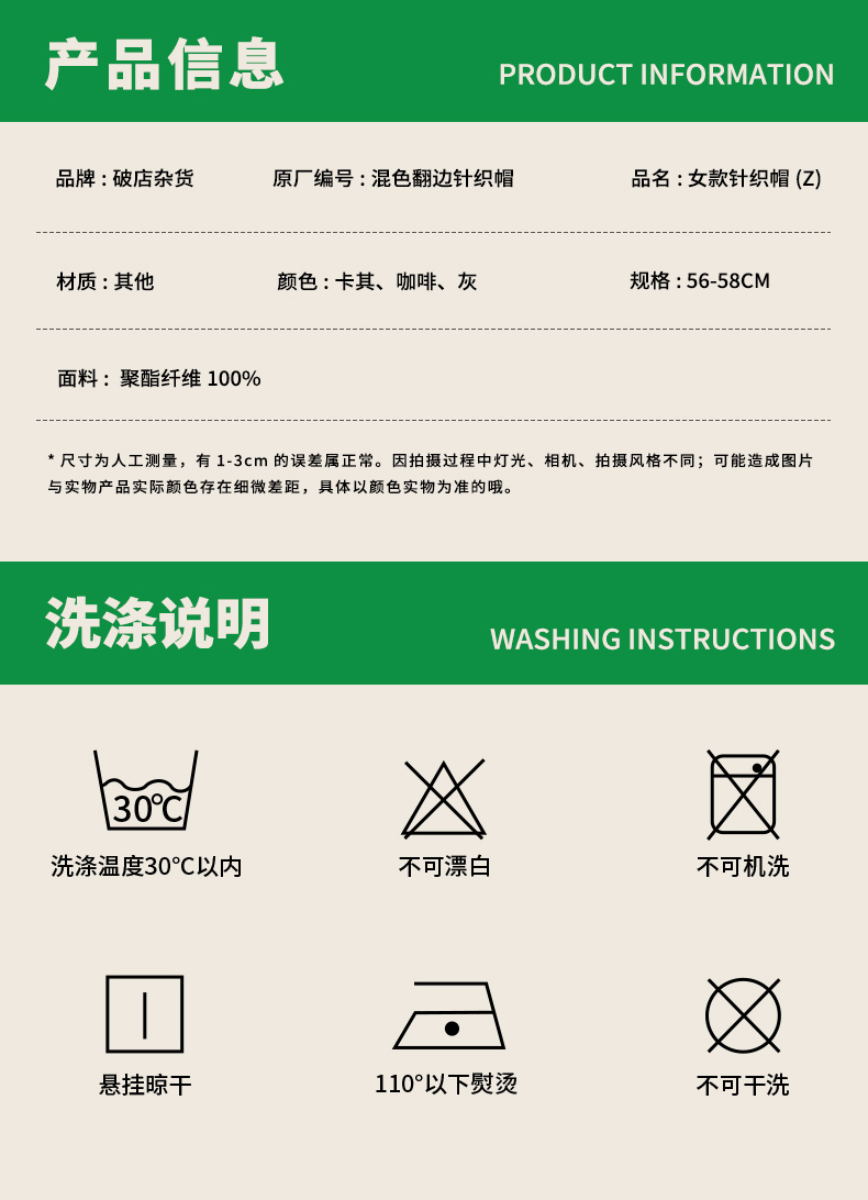 混色翻边针织帽-女款针织帽-纪念日百货门店同款165643848