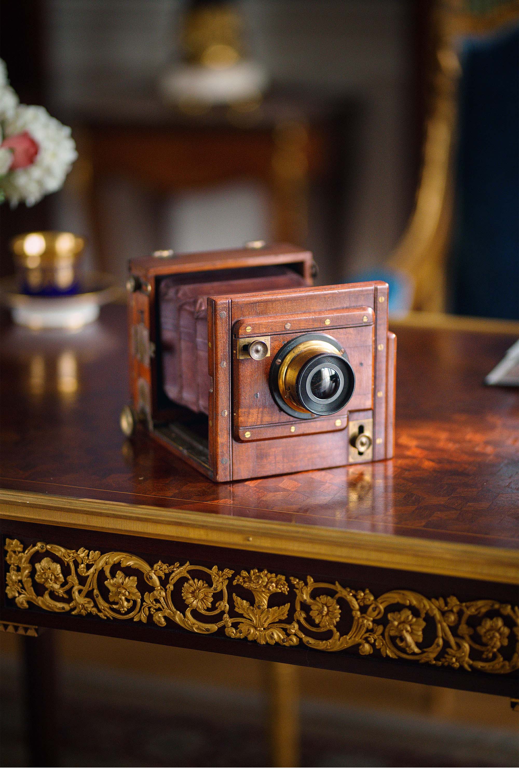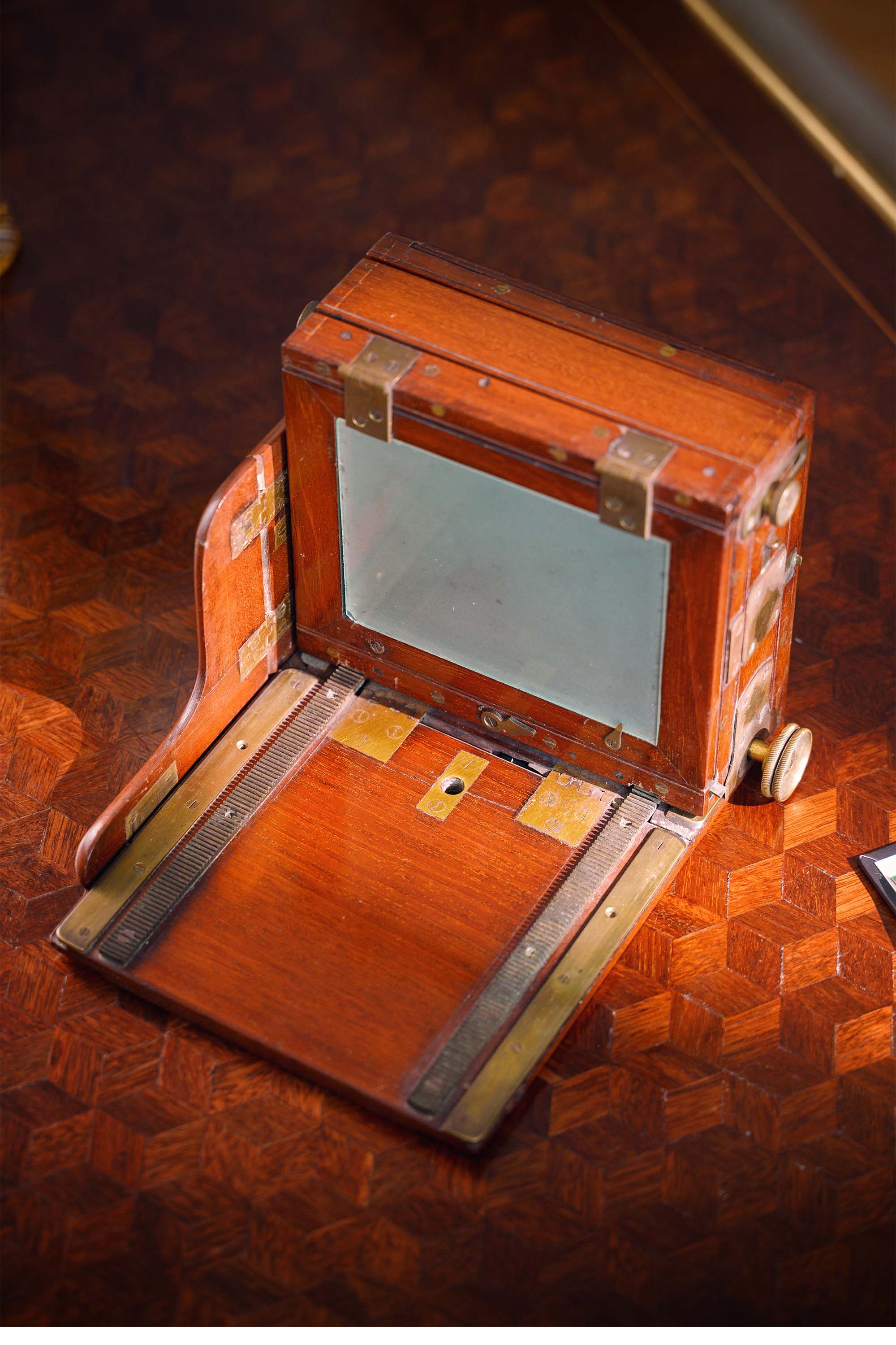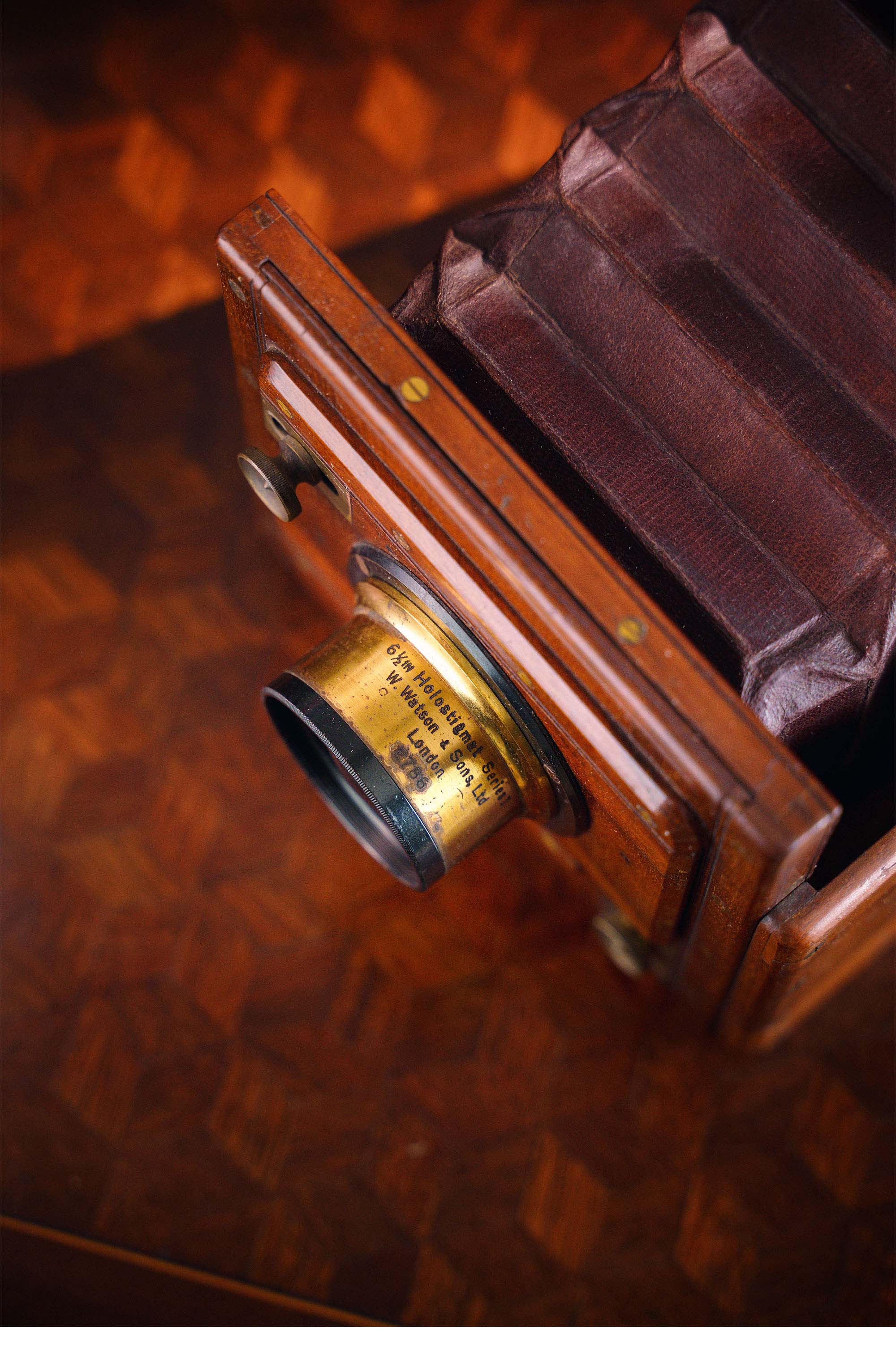 独角鹿西洋古董 英国著名品牌Watson & Sons出品桃花心木及牛皮装饰黄铜配件大画幅风琴机外景相机