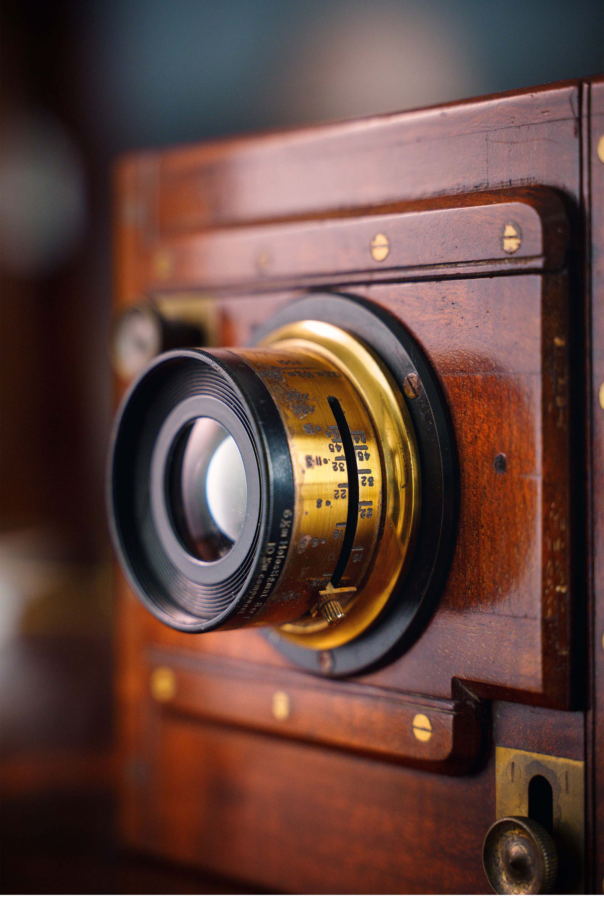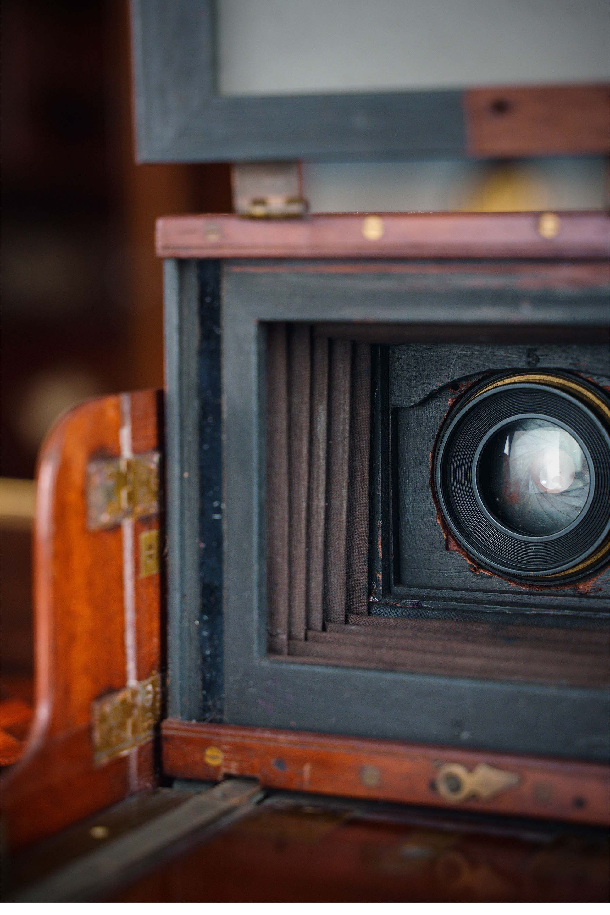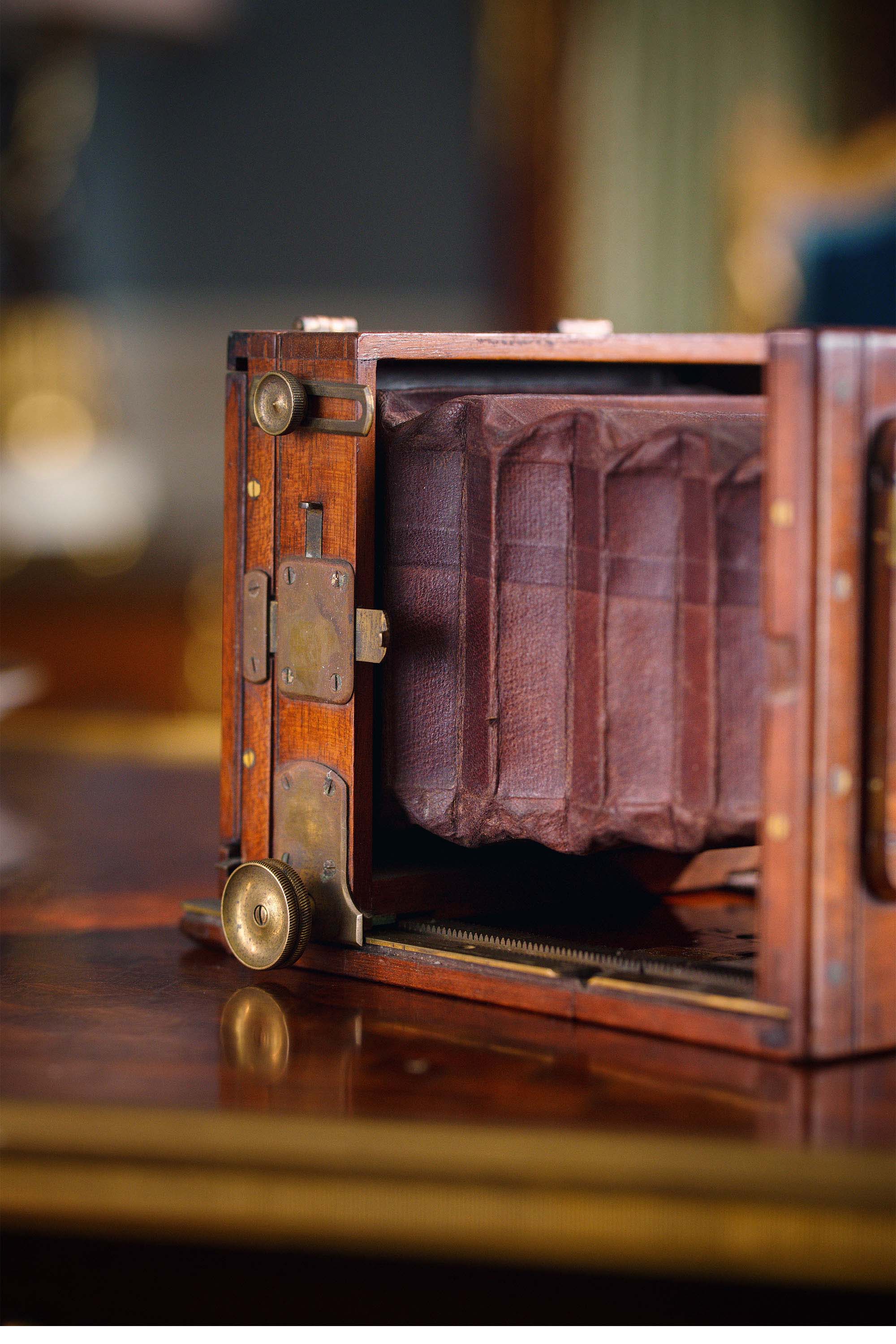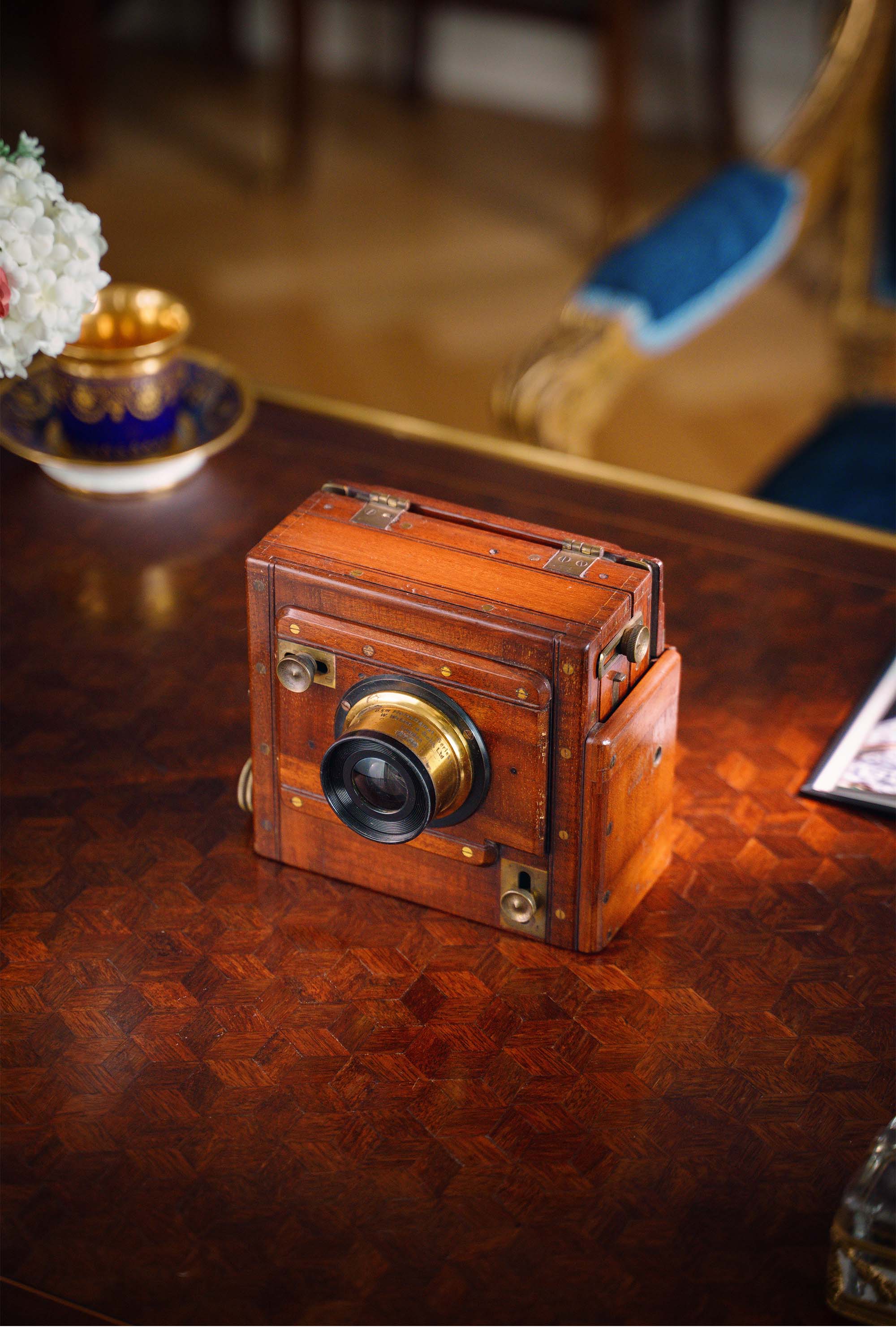 独角鹿西洋古董 英国著名品牌Watson & Sons出品桃花心木及牛皮装饰黄铜配件大画幅风琴机外景相机