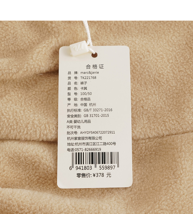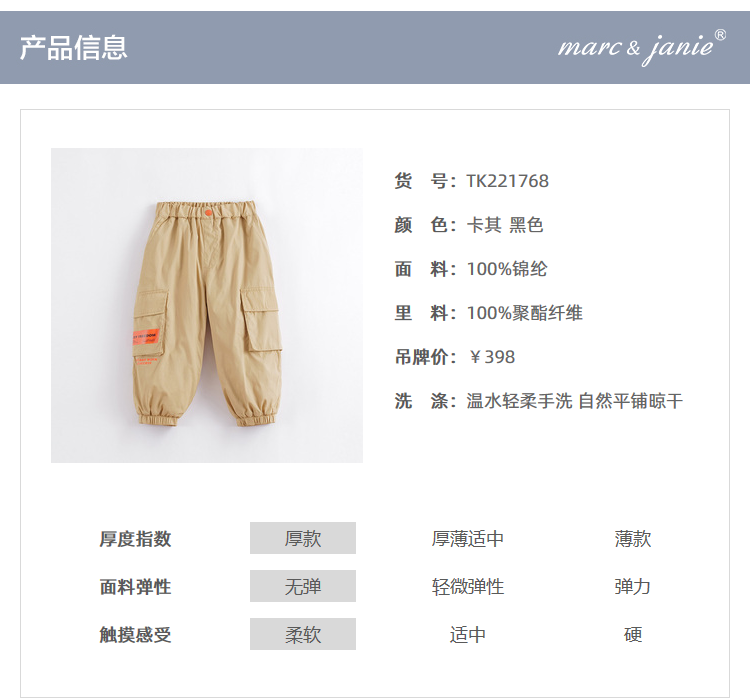 马克珍妮秋冬新款 男童工装风大口袋加绒束脚裤221768