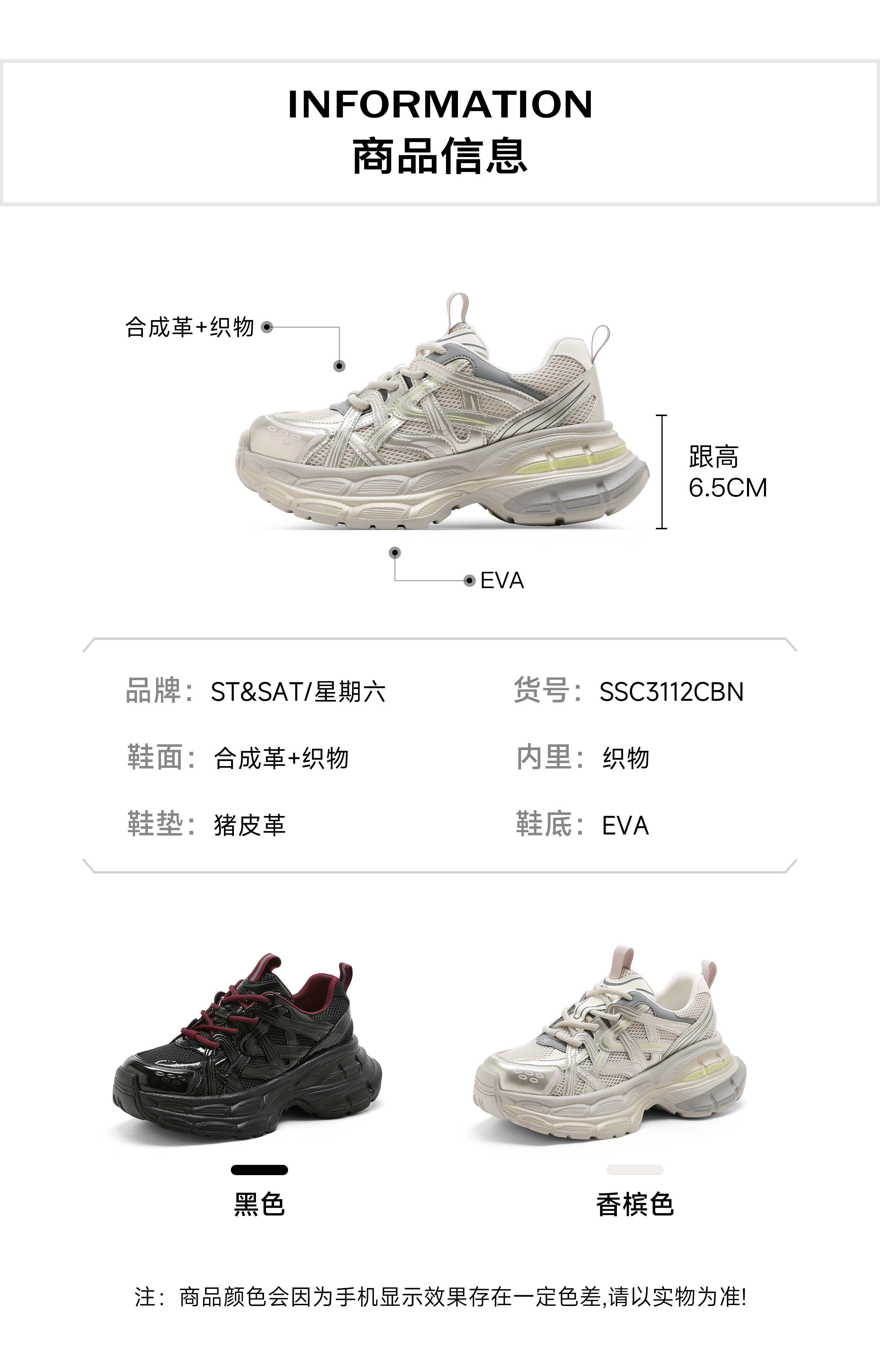 星期六潮流酷感厚底运动老爹鞋SSC3112CBN