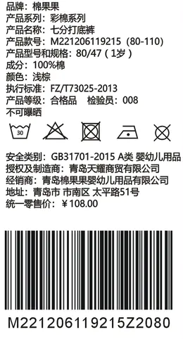 棉果果夏季新疆彩棉女童七分打底裤M221206119215