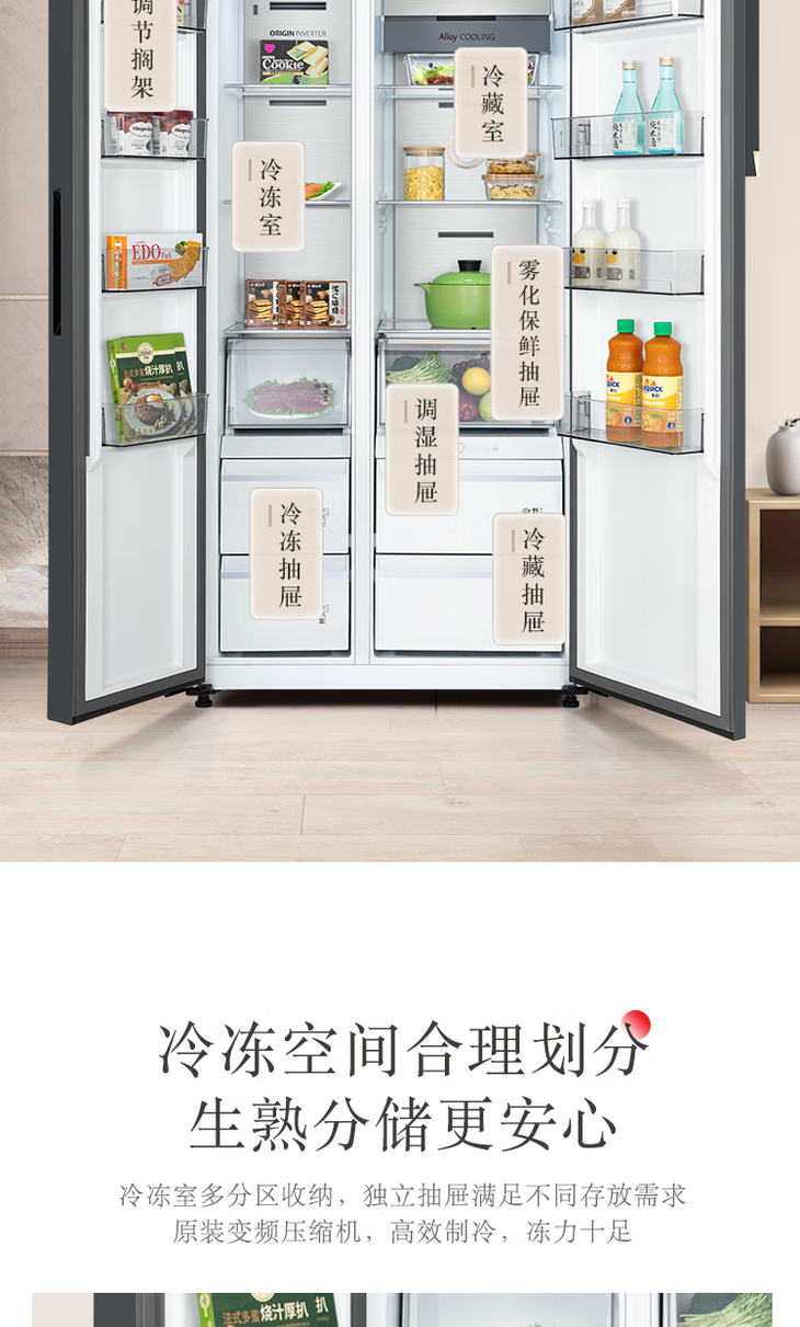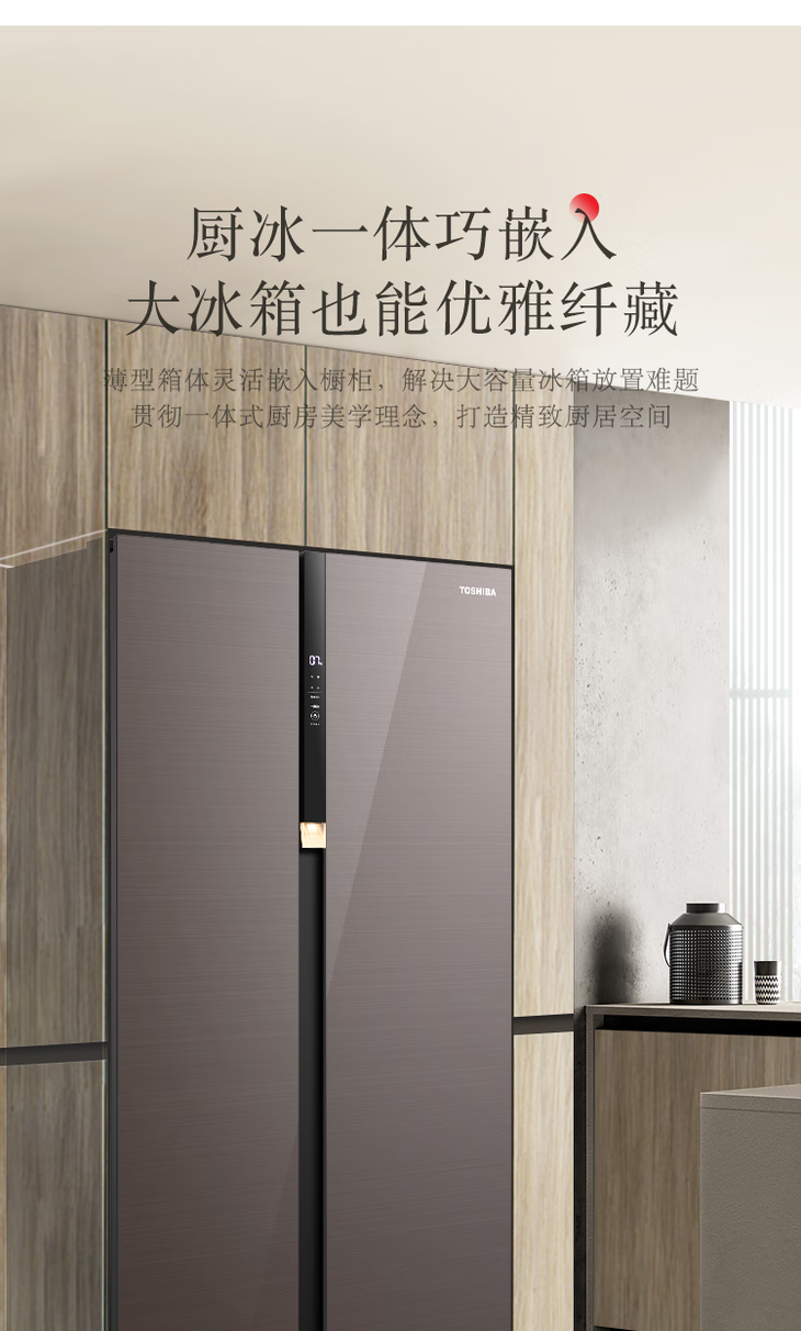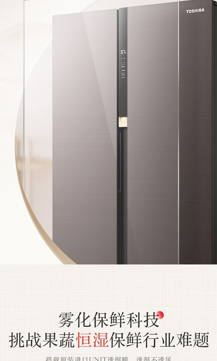 东芝(TOSHIBA)(12973)600升超大容量双循环对开门冰箱 果蔬雾化保鲜 一级能效省电风冷无霜电冰箱 GR-RS630WE-PG1A8
