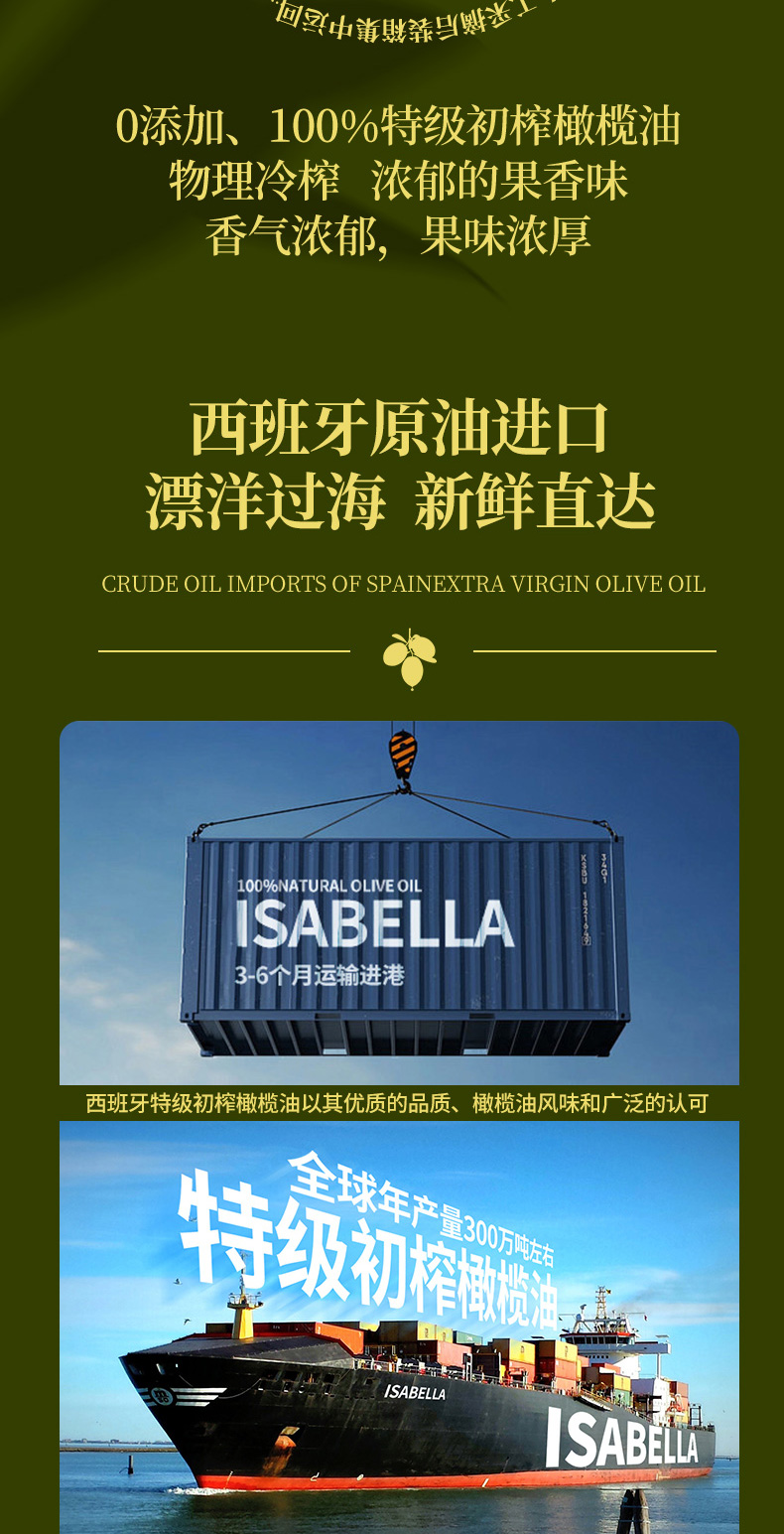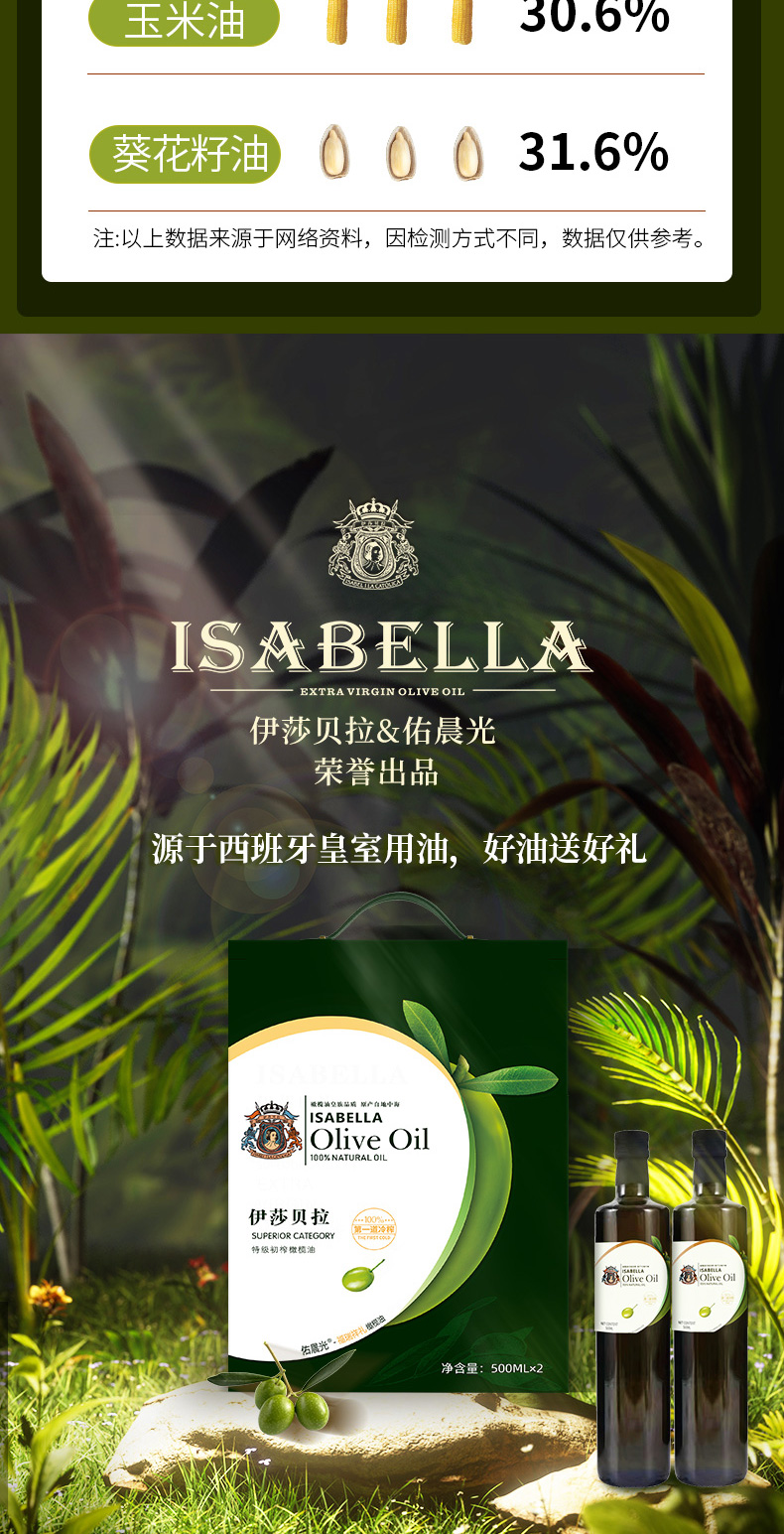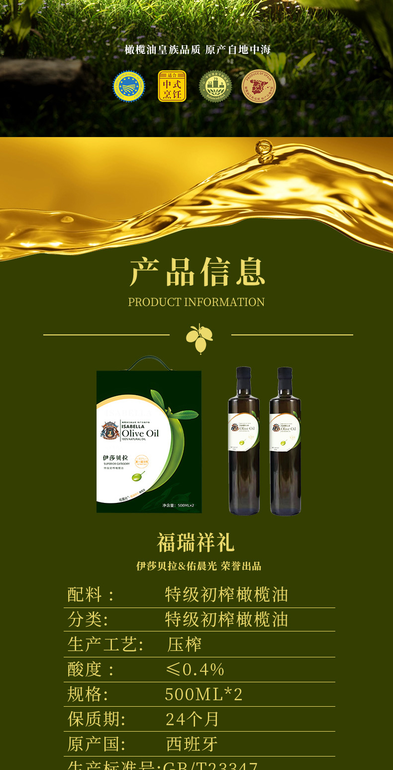 伊莎贝拉ISABELLA&佑晨光-福瑞祥礼特级初榨橄榄油500ml*2