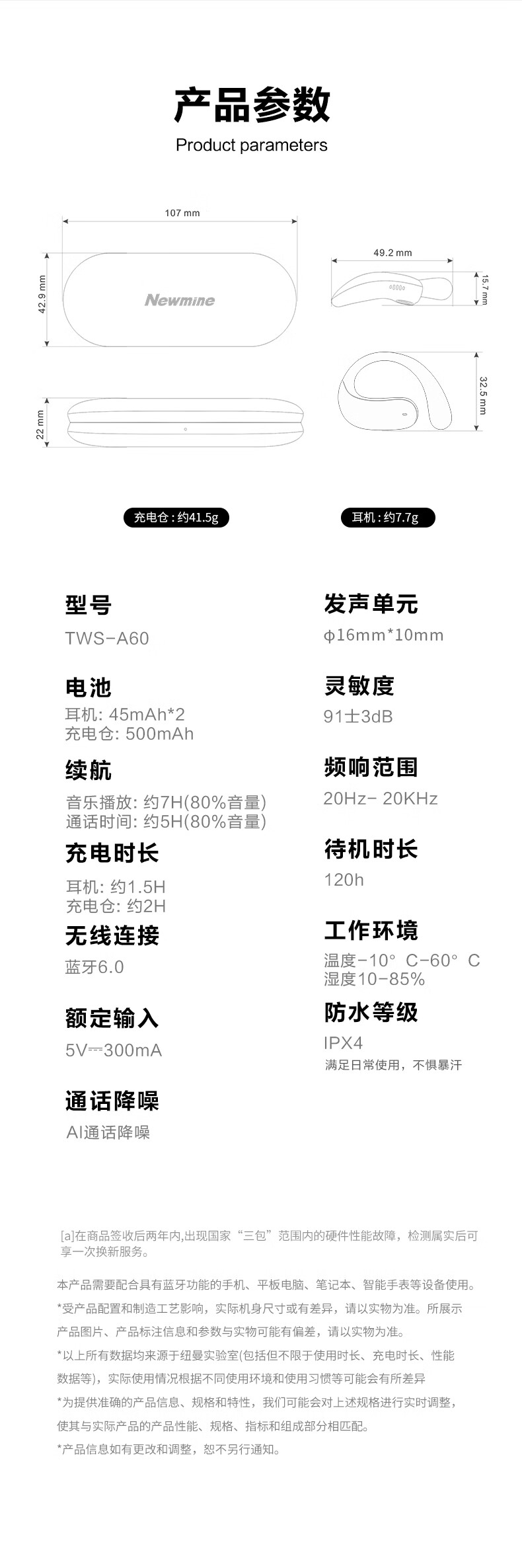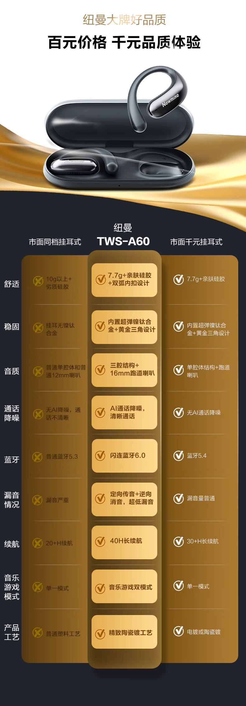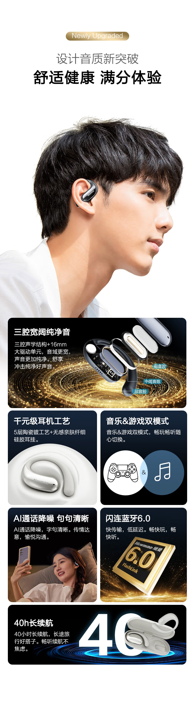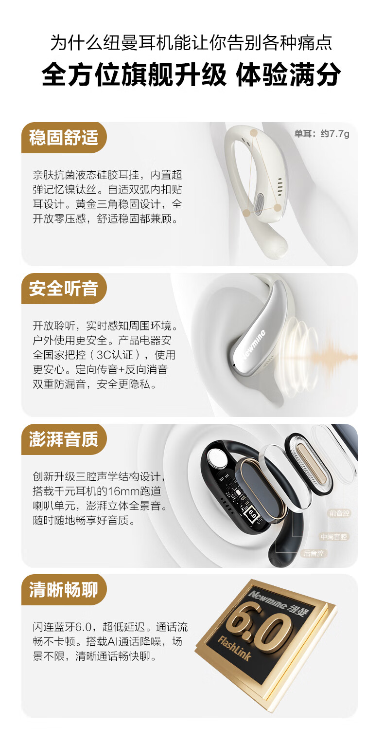 纽曼 耳夹式骨传导开放式蓝牙耳机TWS-X3 PRO