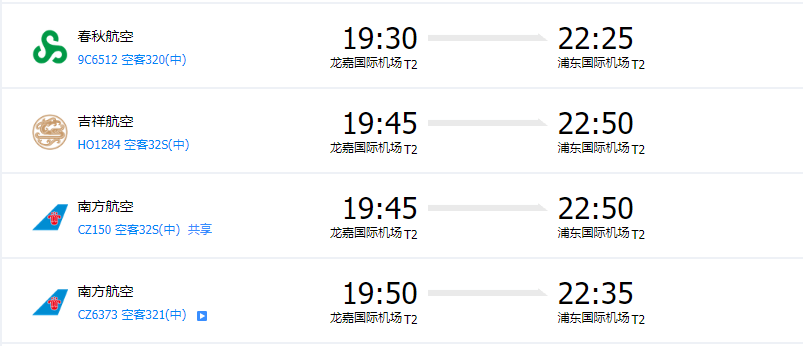 返程航班推荐: