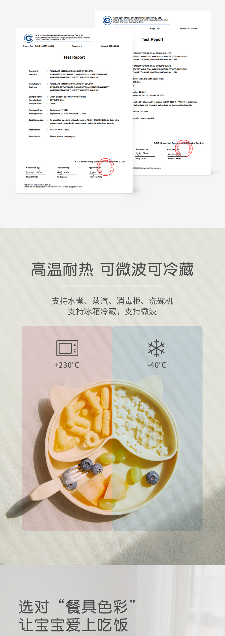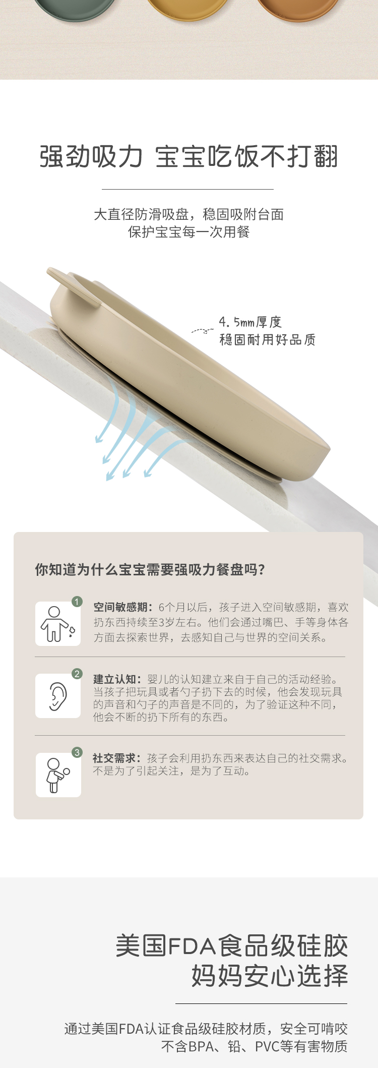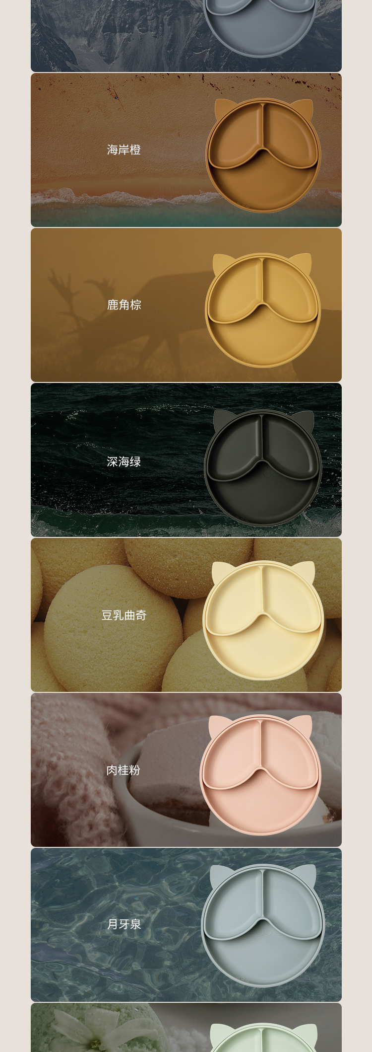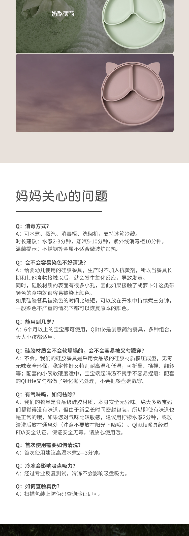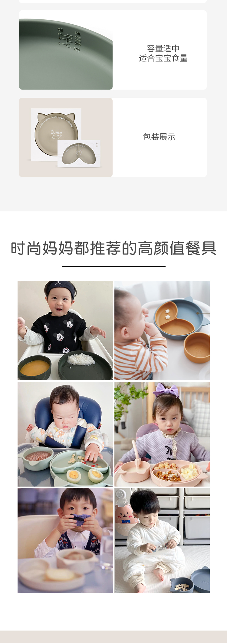 Qlittle儿童餐盘宝宝辅食防摔防烫吸盘式食品级硅胶分格餐盘套装