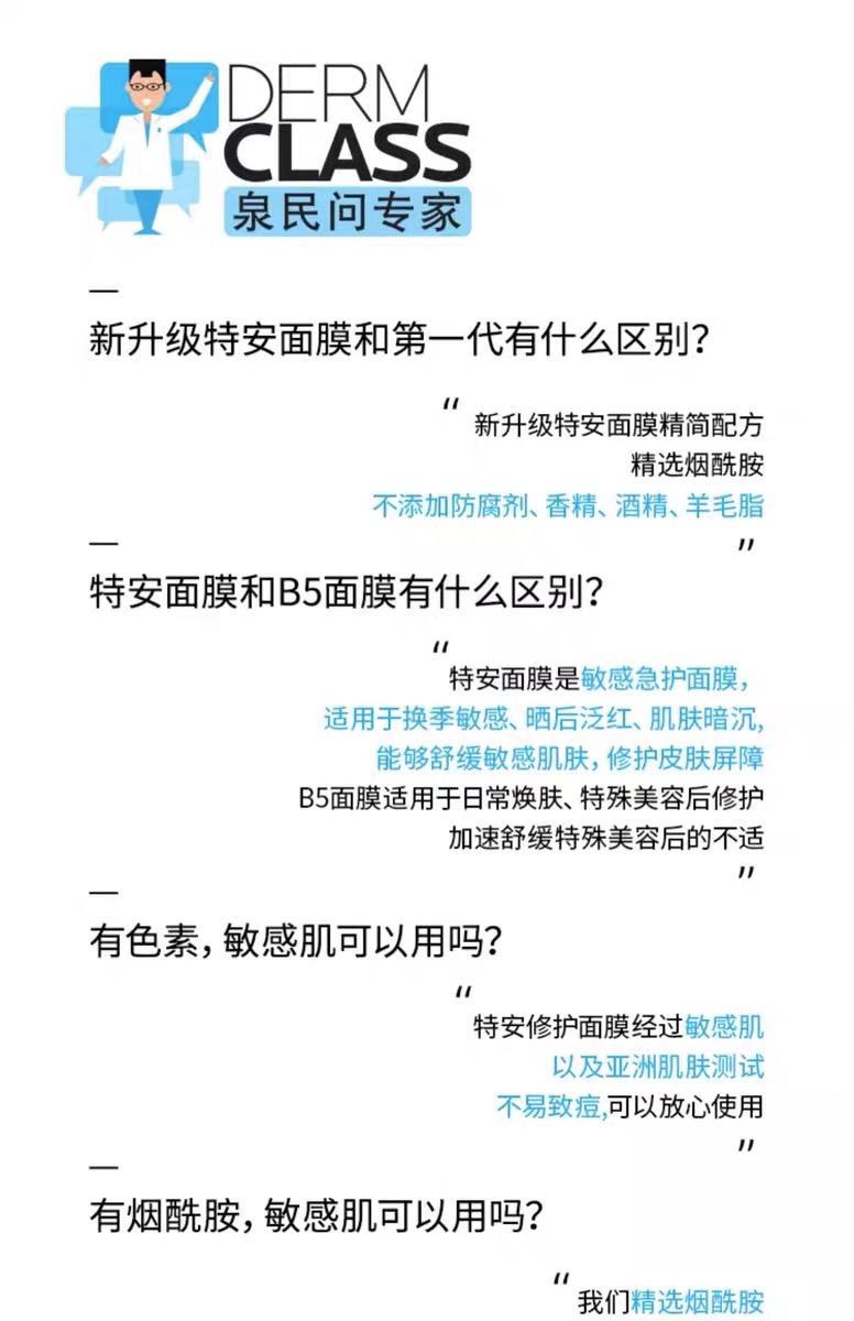理肤泉特安面膜舒缓修护褪红补水保湿玻尿酸蓝绷带
