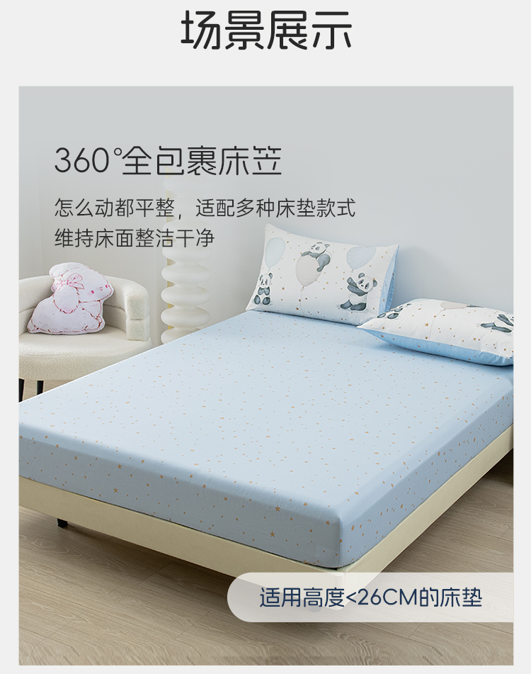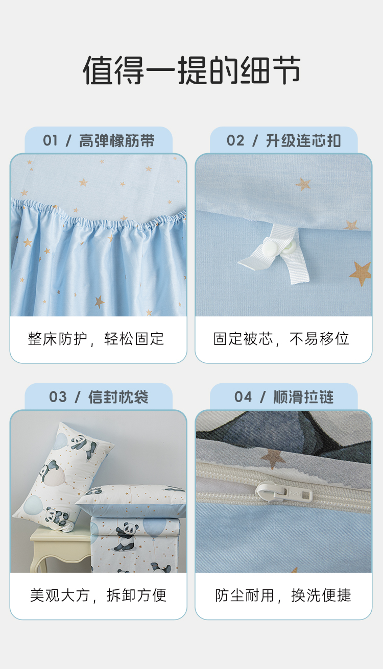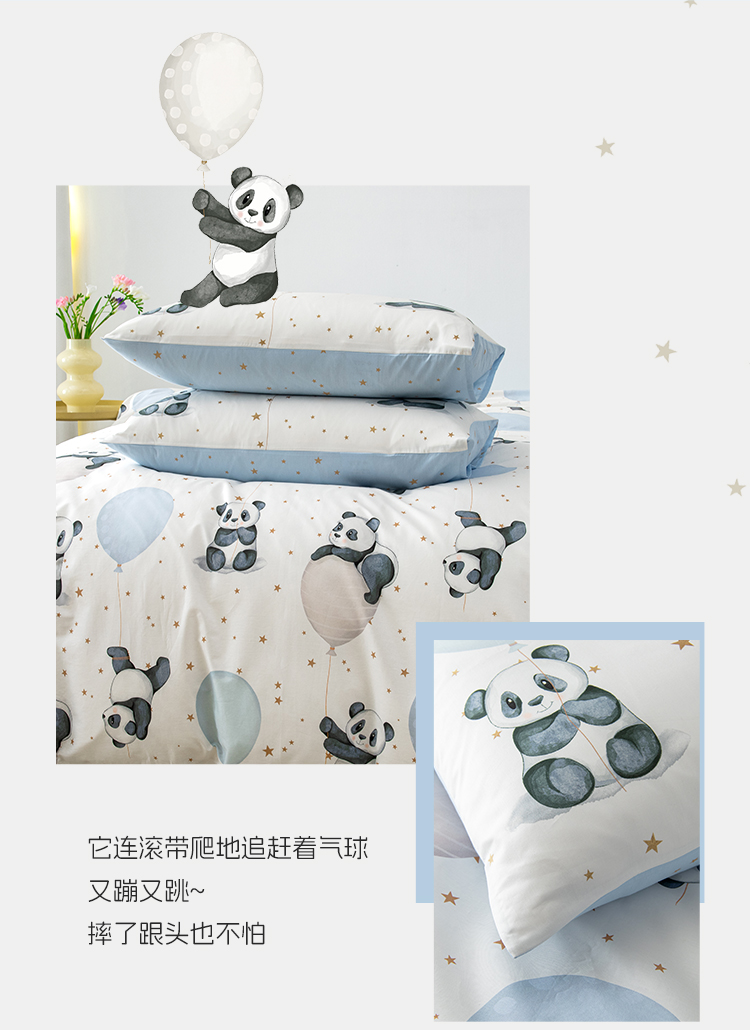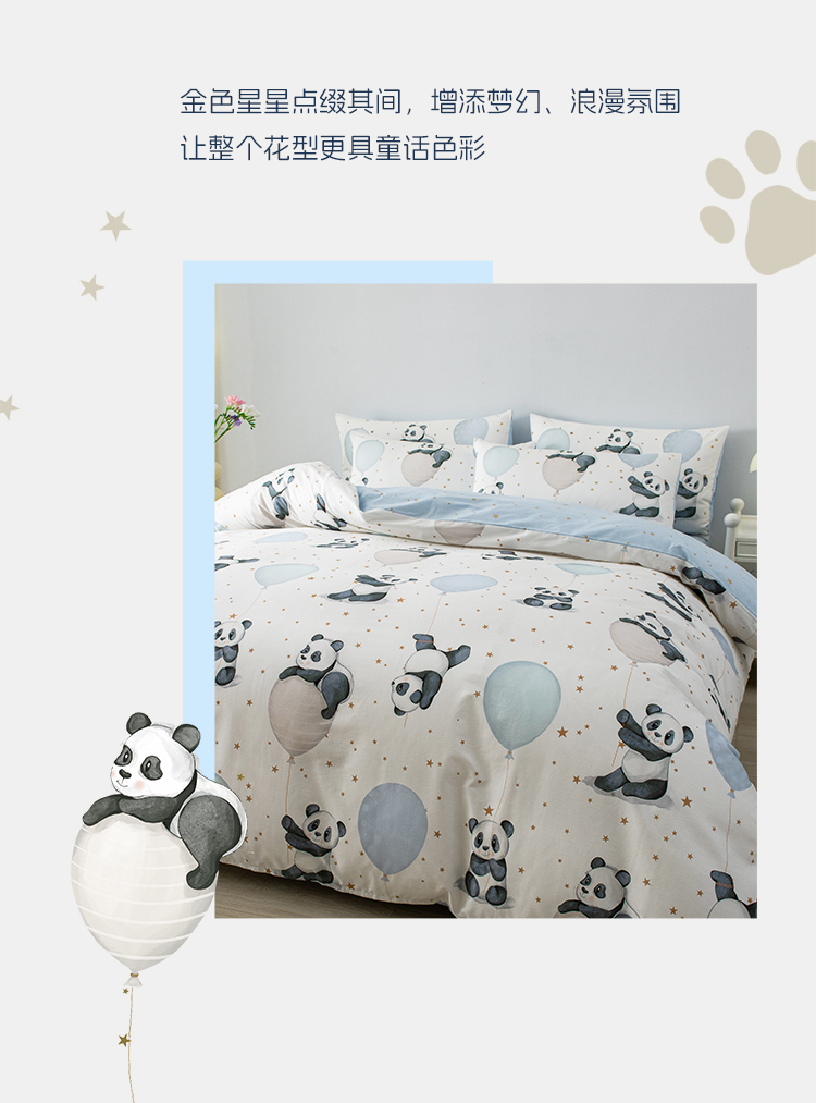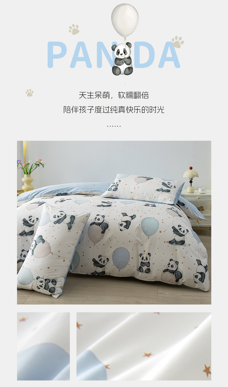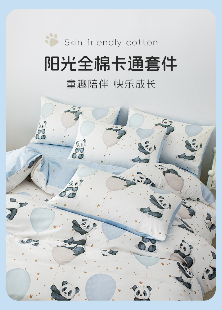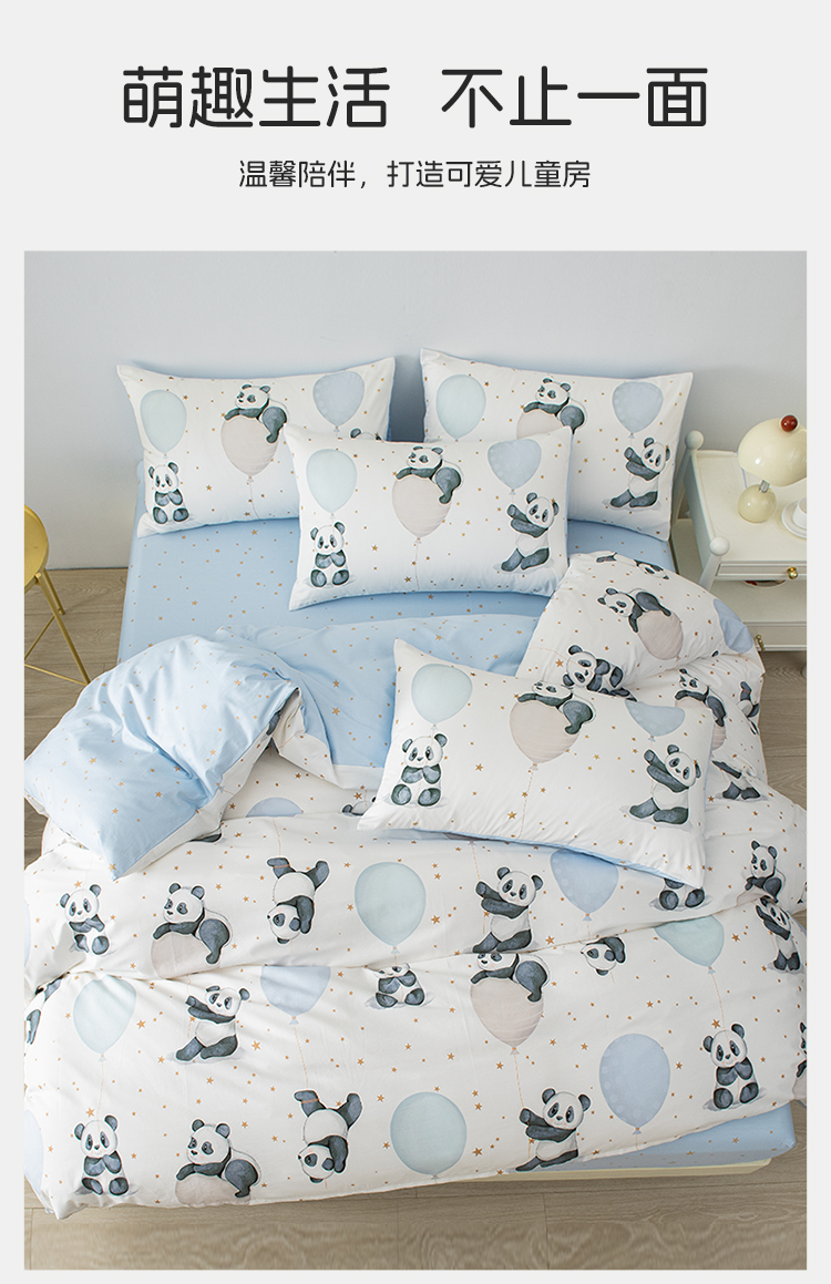 2025年新款雅芳婷卡通四件套全棉纯棉熊猫被套床笠款学生宿舍套件