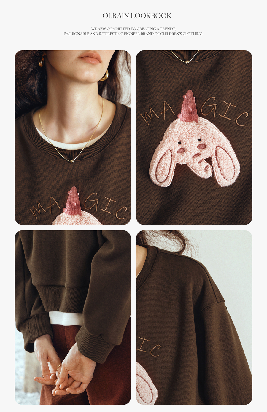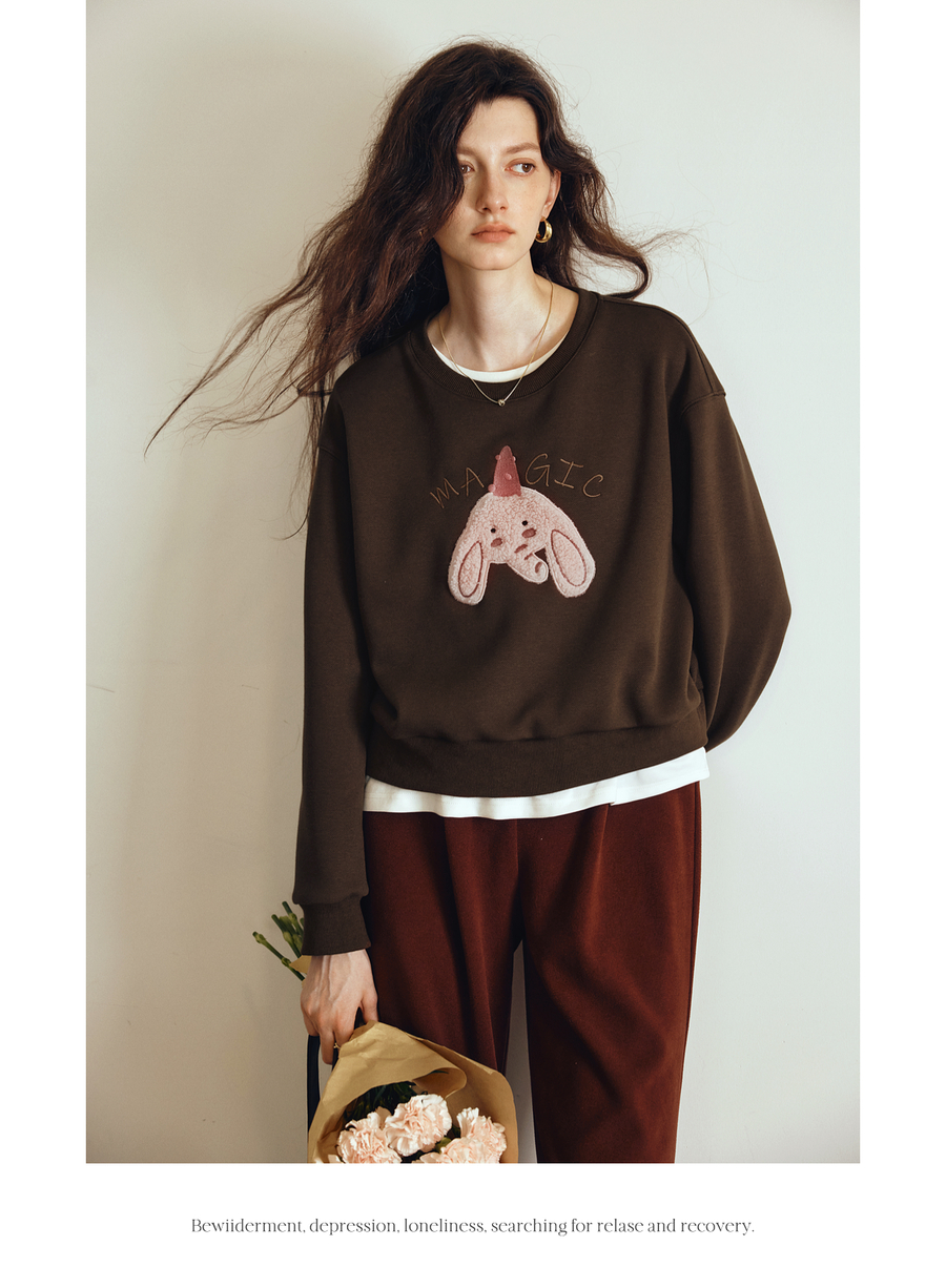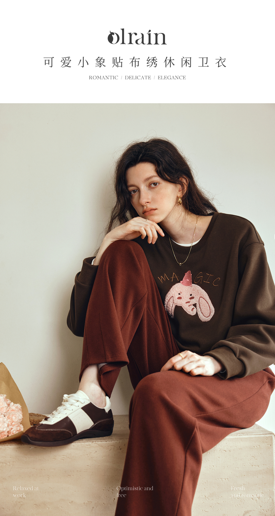 OLrain欧芮儿2025新款女秋季可爱小象贴布绣休闲百搭卫衣宽松上衣