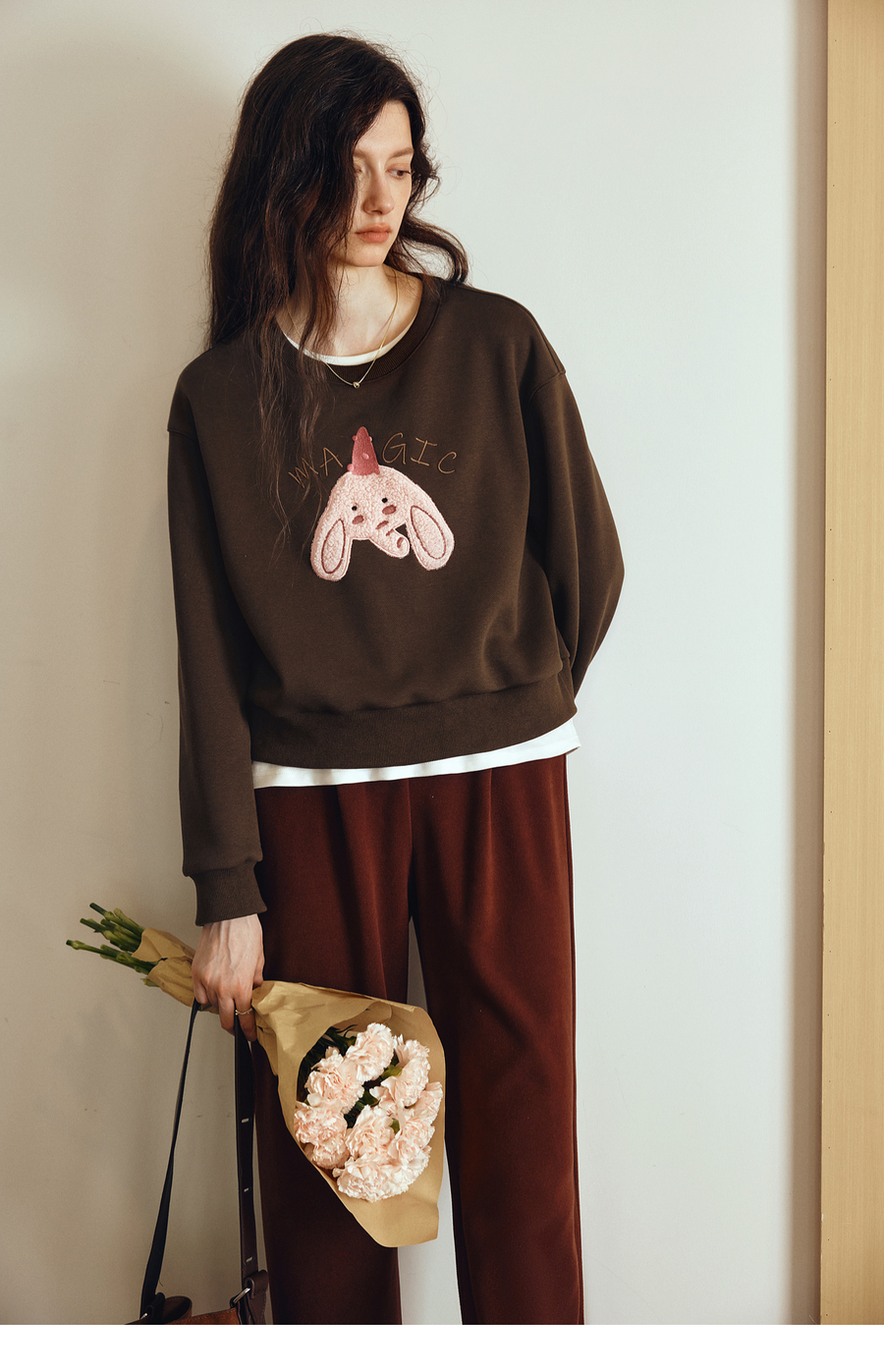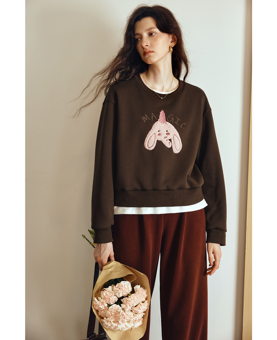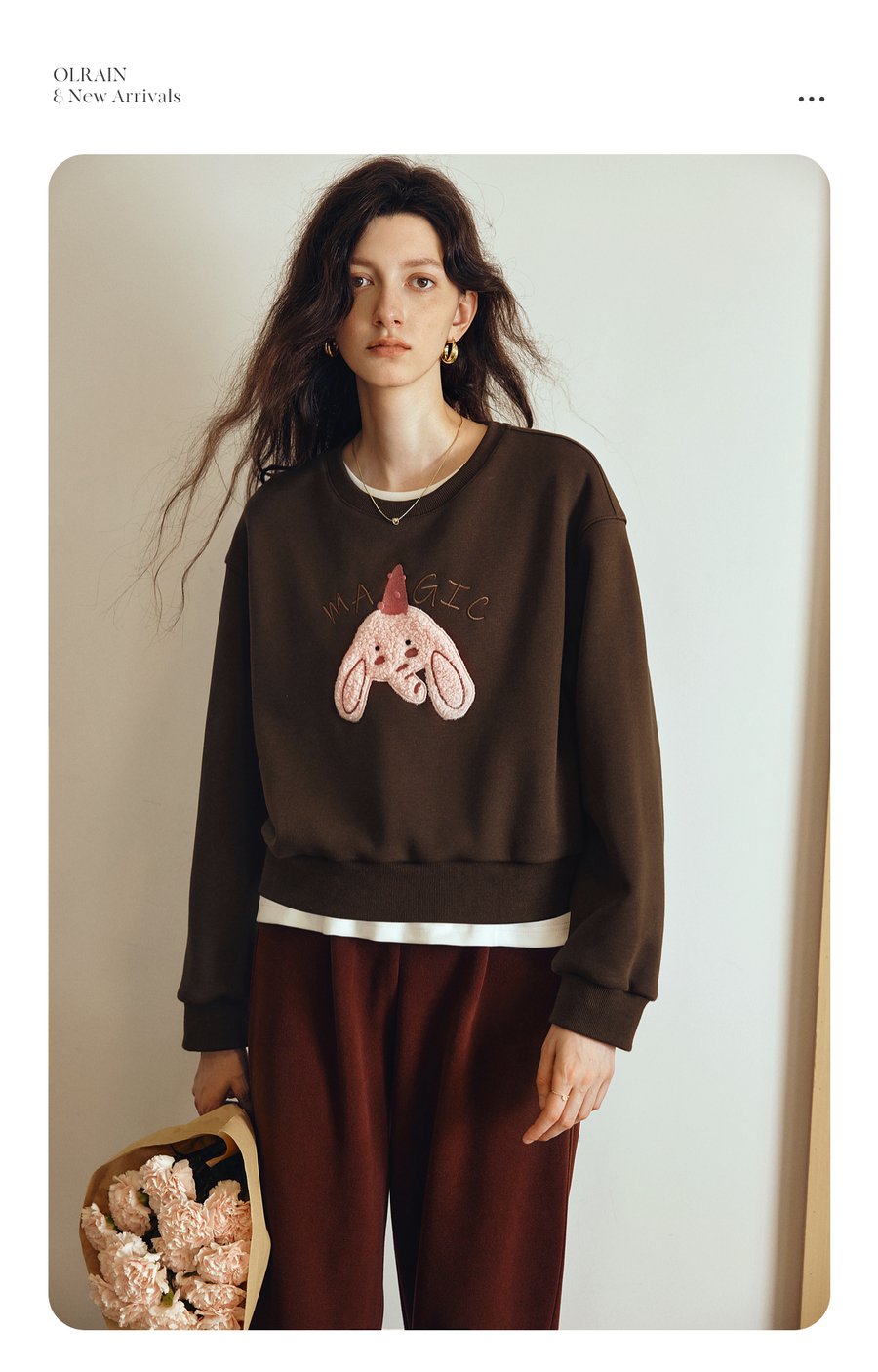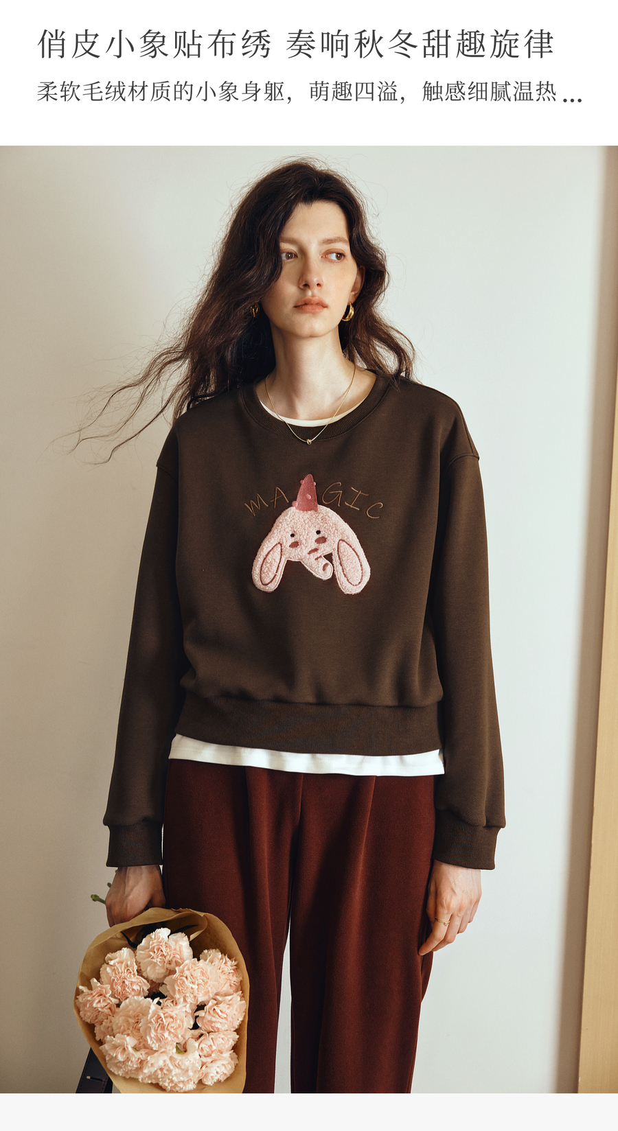 OLrain欧芮儿2025新款女秋季可爱小象贴布绣休闲百搭卫衣宽松上衣