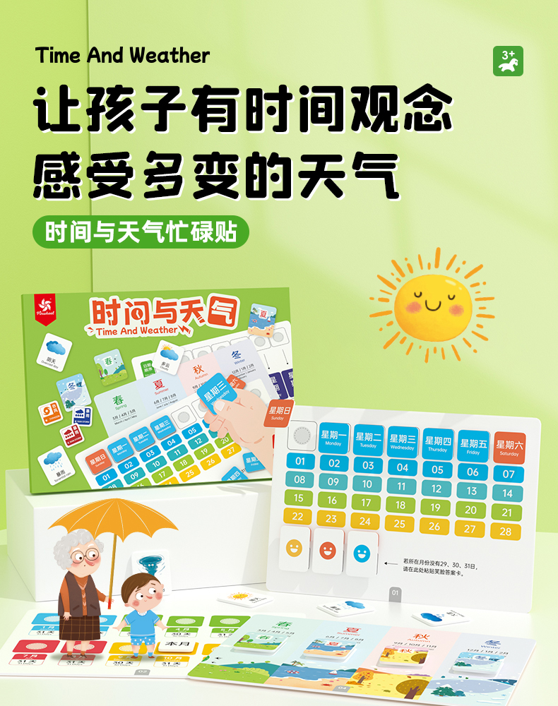 Pinwhee时间与天气忙碌贴(3岁及以上)