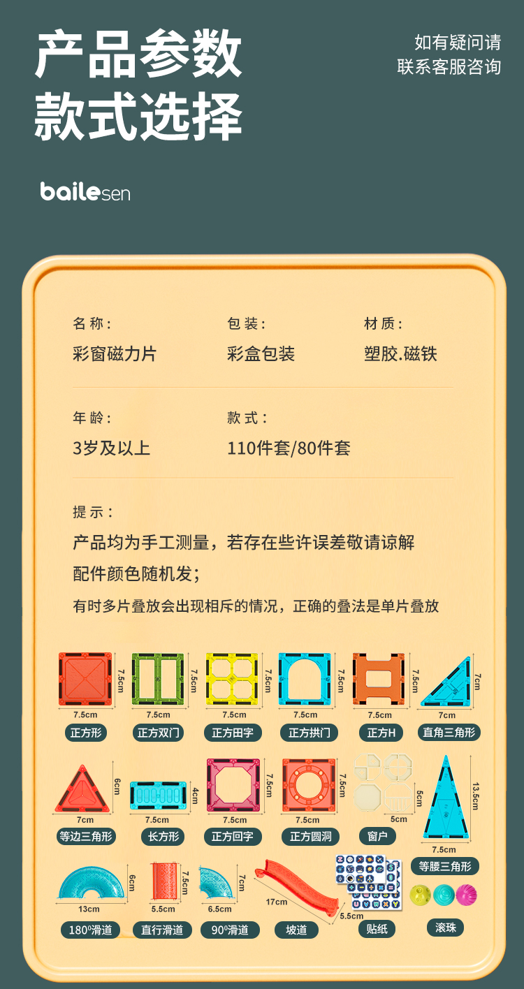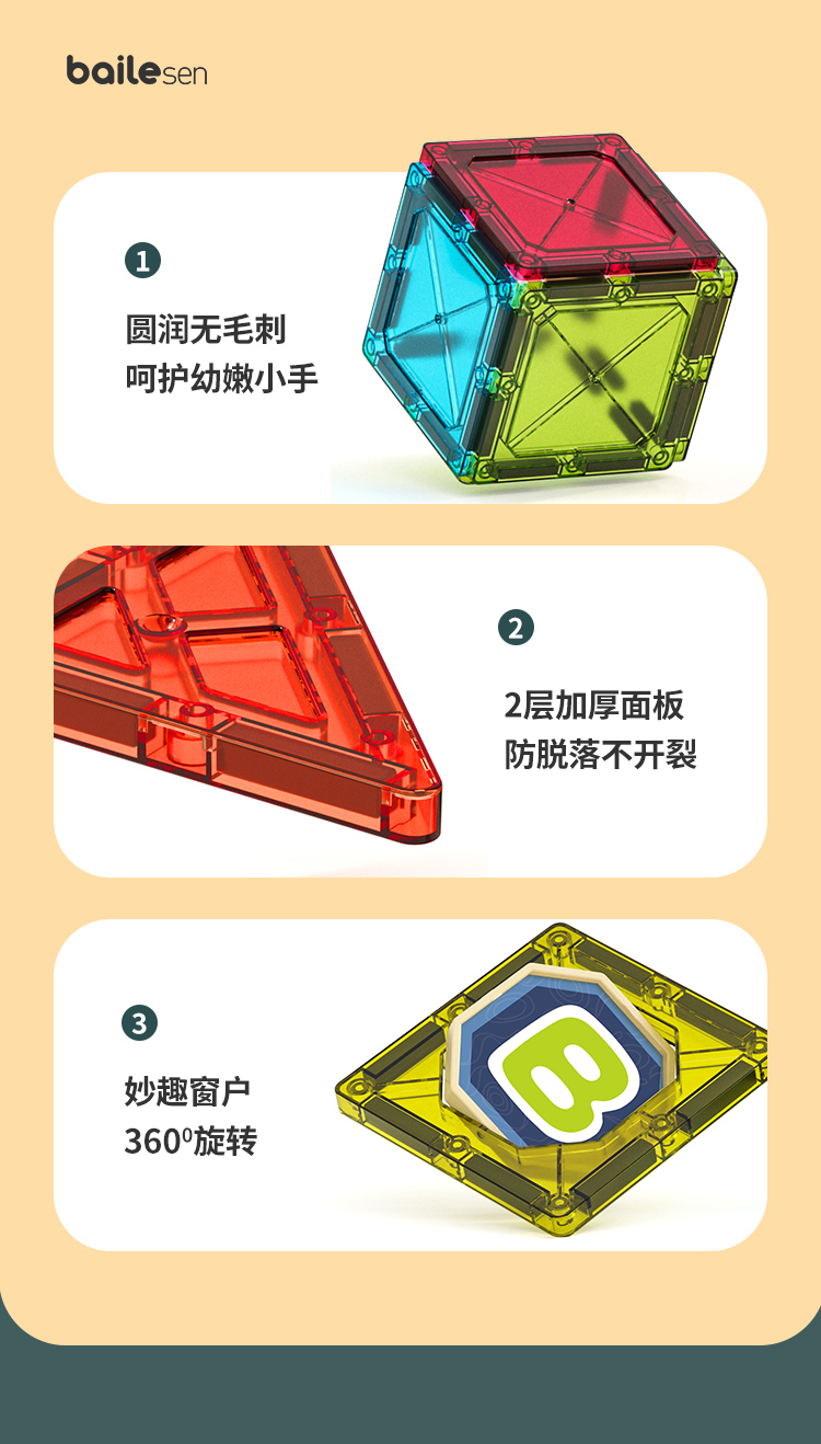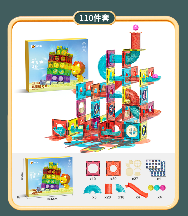 【鱼圈专享】百乐森 彩窗磨双钻磁力片100片轨道磁力片110片 圆润无毛刺 高颜值 耐磨耐摔