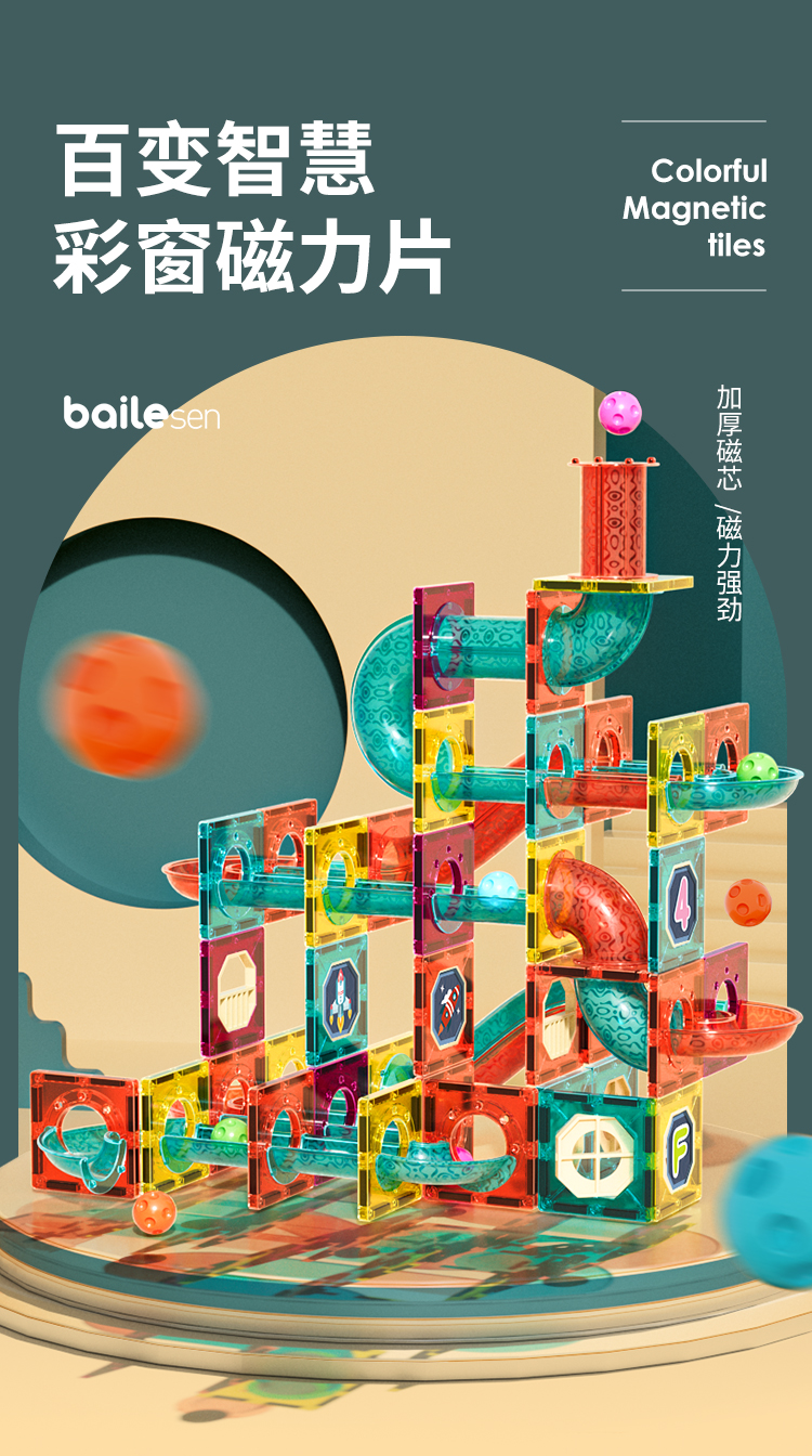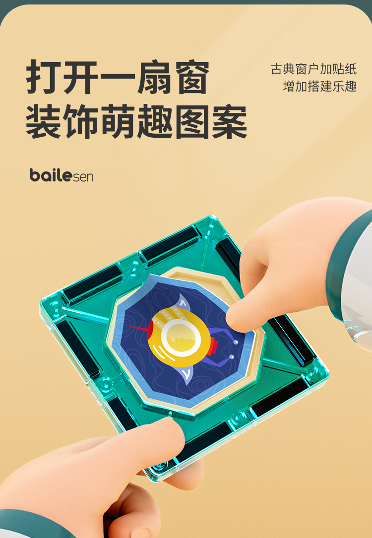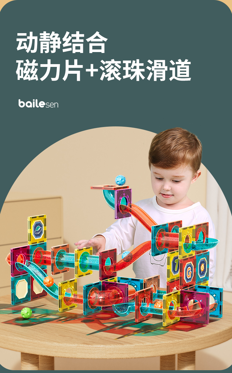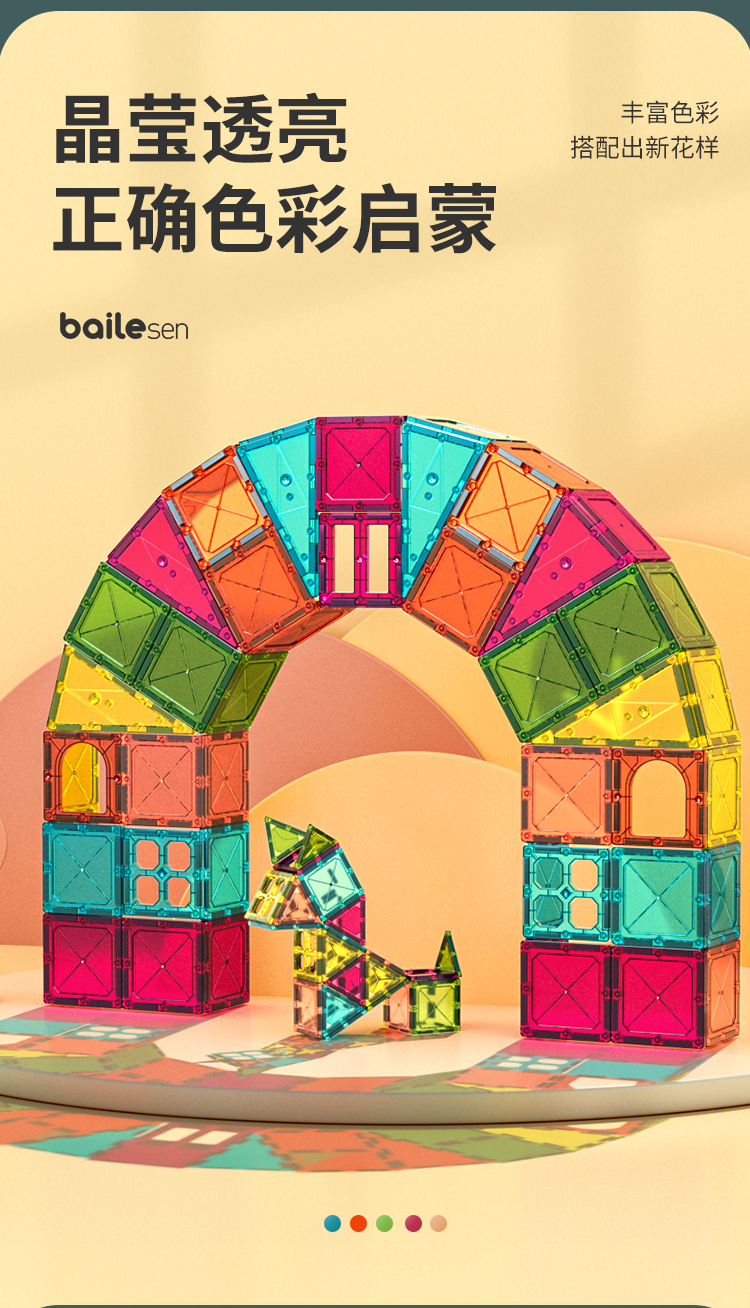 【鱼圈专享】百乐森 彩窗磨双钻磁力片100片轨道磁力片110片 圆润无毛刺 高颜值 耐磨耐摔