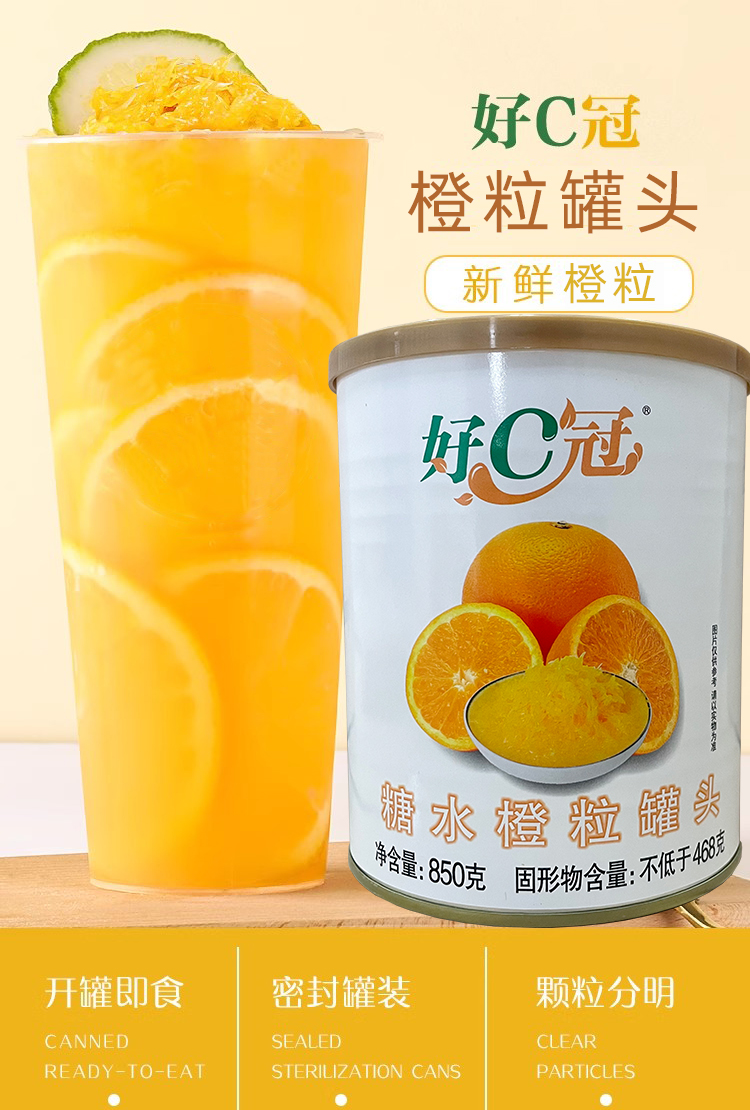 好C冠糖水橙粒罐头850g 海通橙果粒罐头水果茶霸气橙子粒粒橙
