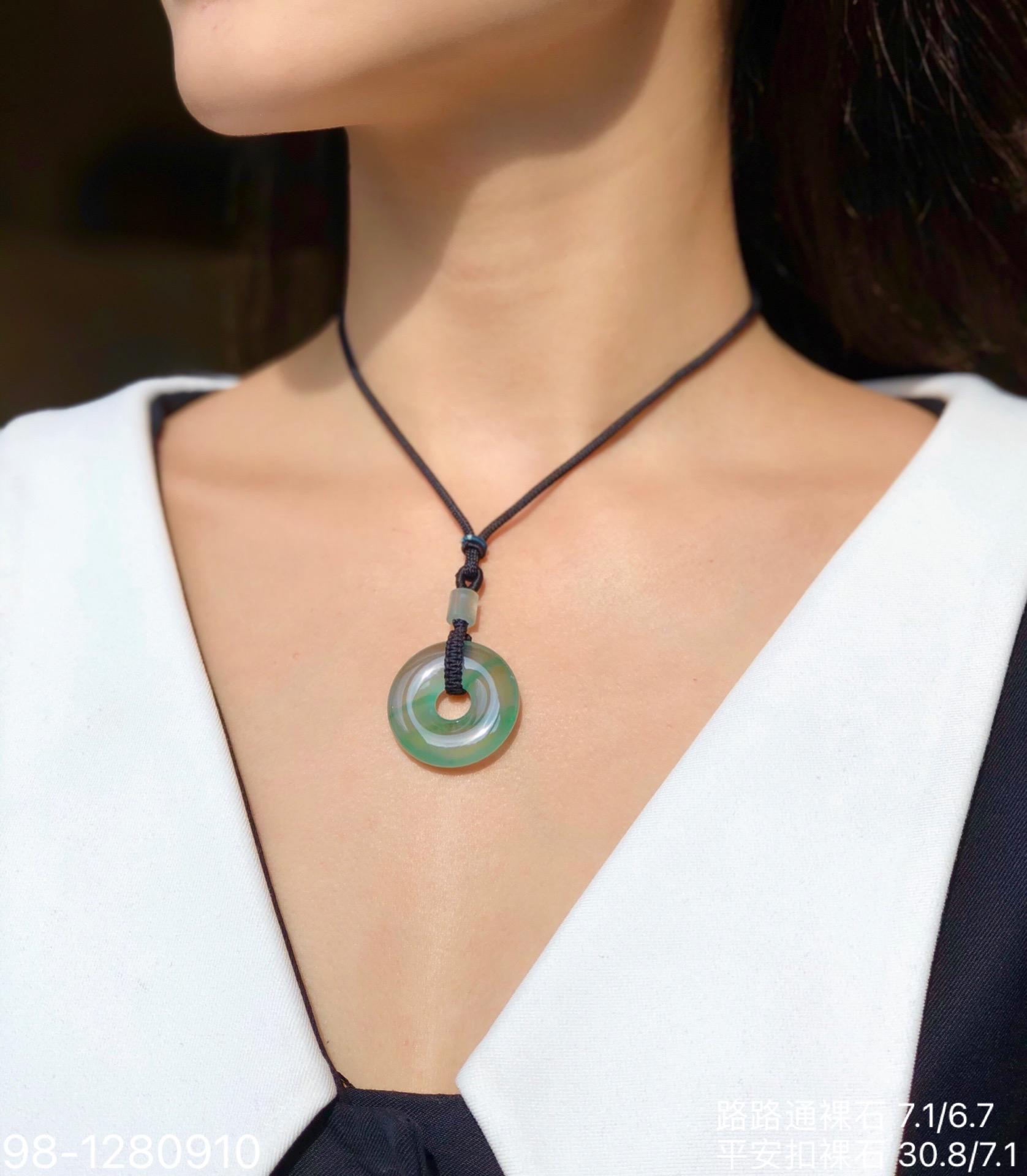 98-1280910,高冰种飘翠平安扣素件吊坠。73999
