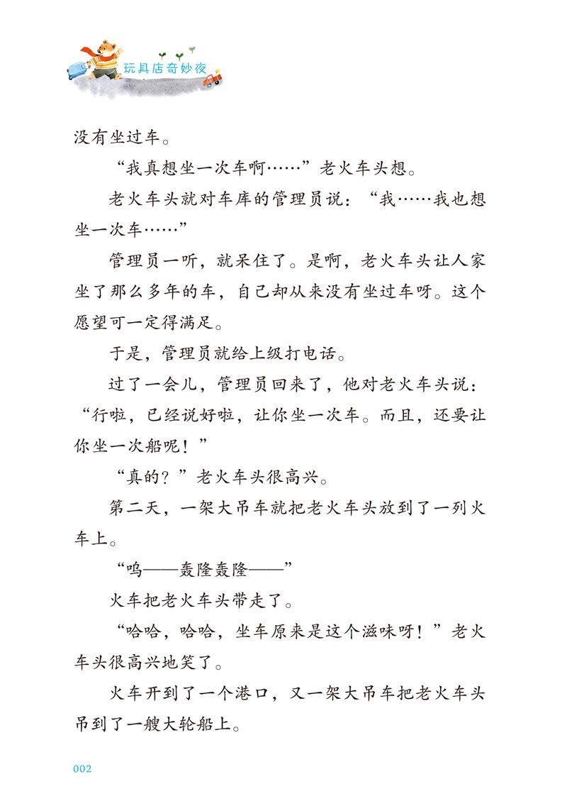 过了一会儿,管理员回来了,他对老火车头说:“行啦,已经说好啦,让你坐一次车。而且,还要让你坐一次船呢!”