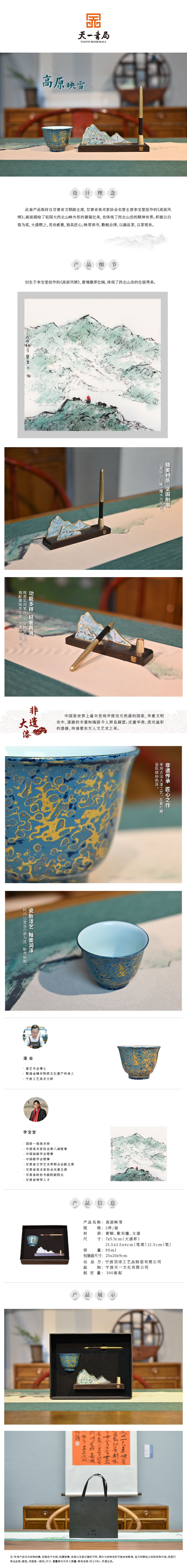 羽诗制造出品 高原映雪大漆白瓷杯黄铜笔架黄铜笔礼盒套装