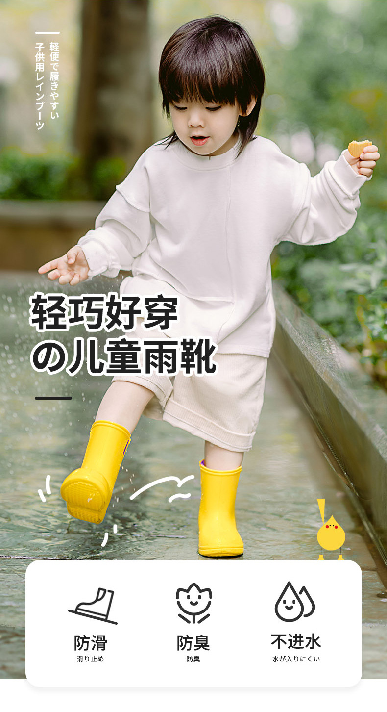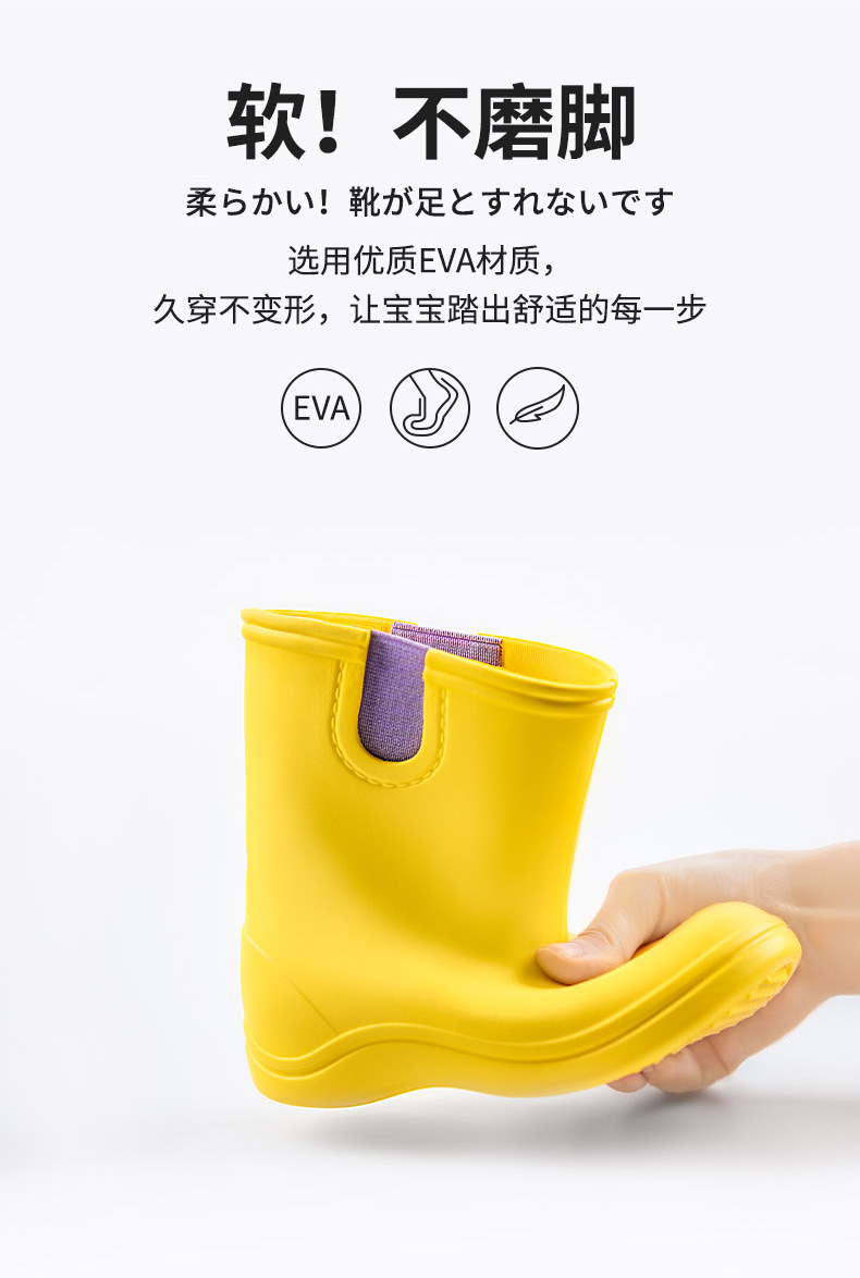 提前为宝宝准备好一双防水雨靴,雨天出行、踩水都不怕。