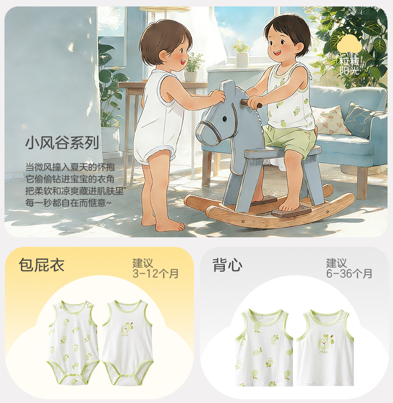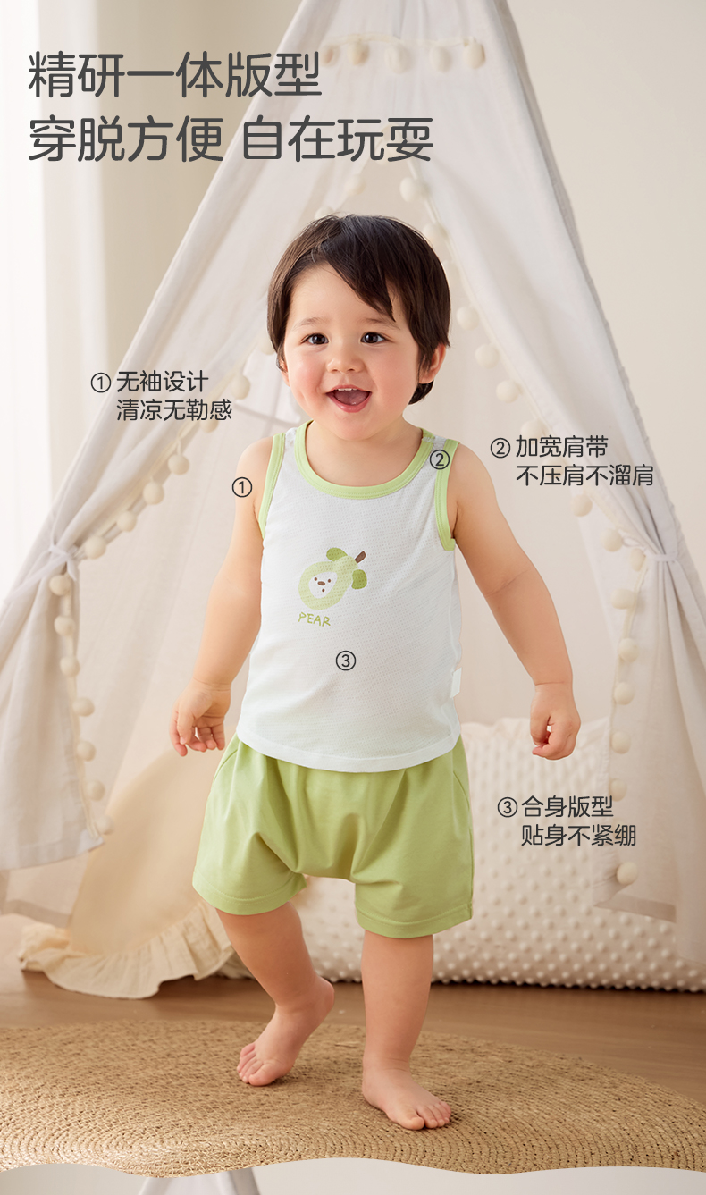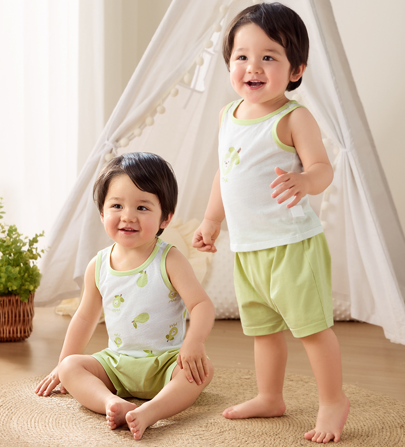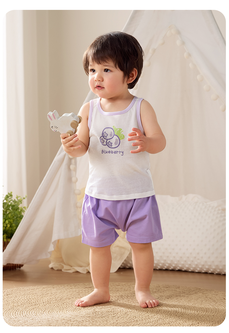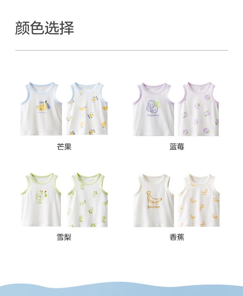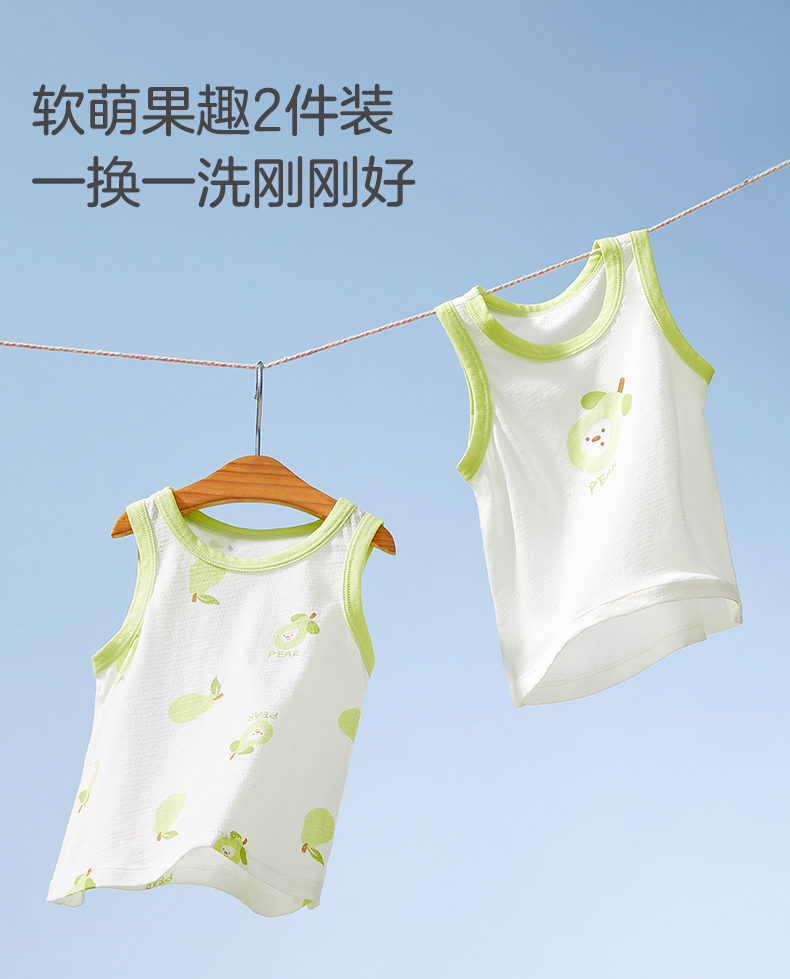 粒粒阳光婴儿背心夏季纯棉儿童背心宝宝无袖打底衣2件装