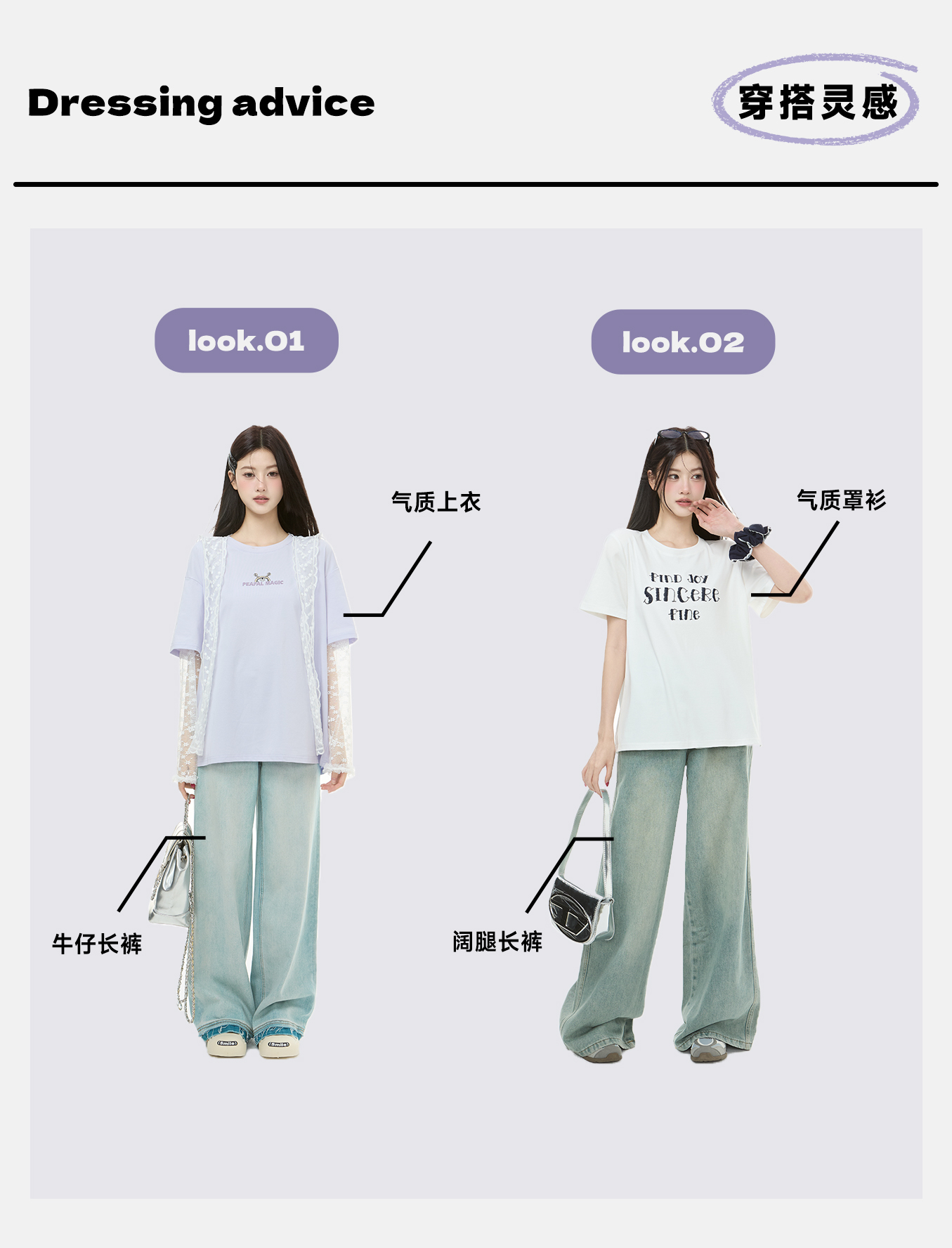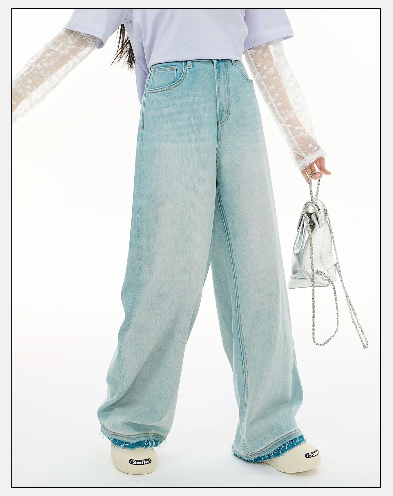 P&X设计师女装2025秋季学院风阔腿裤宽松牛仔长裤825310261 蓝色