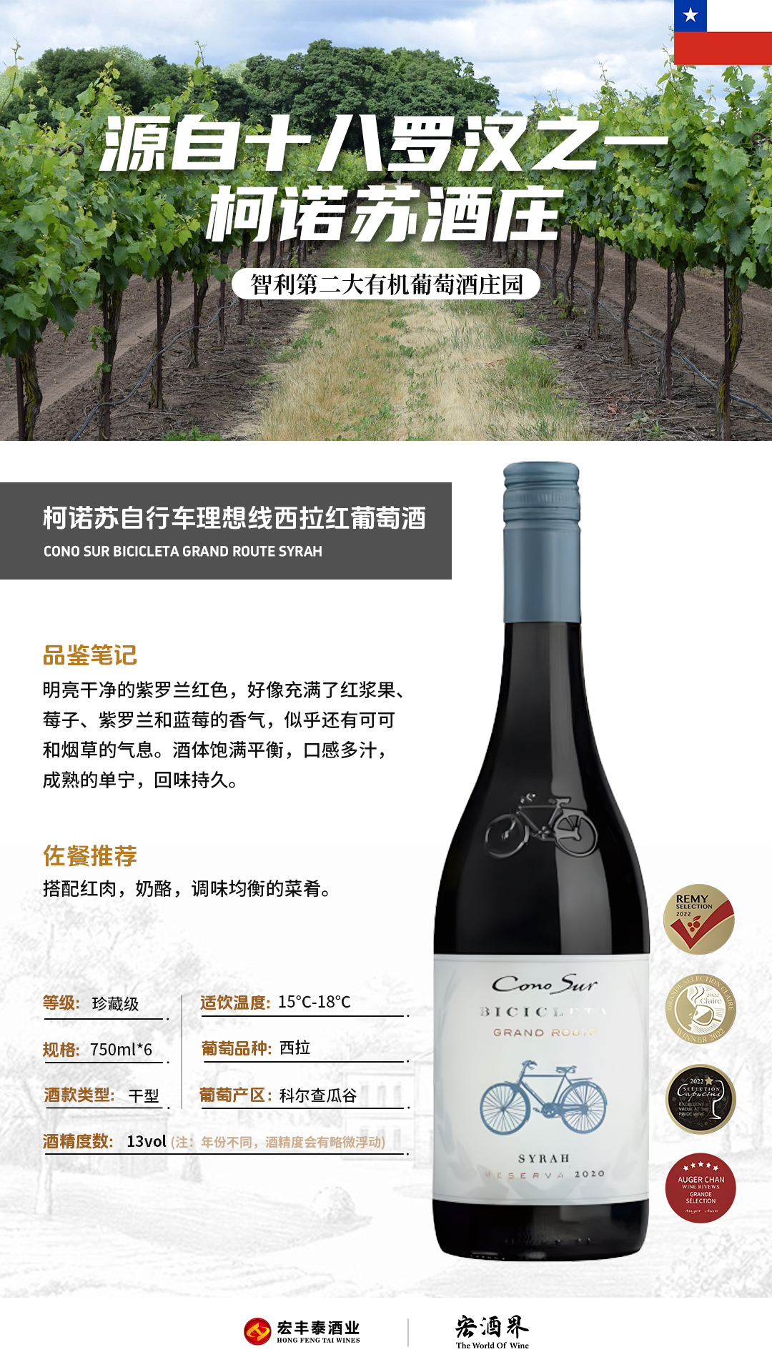 智利-柯诺苏自行车理想线西拉红葡萄酒