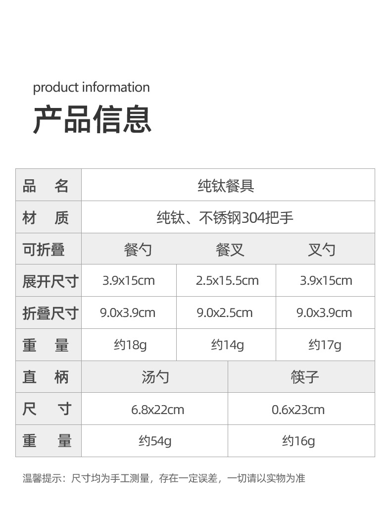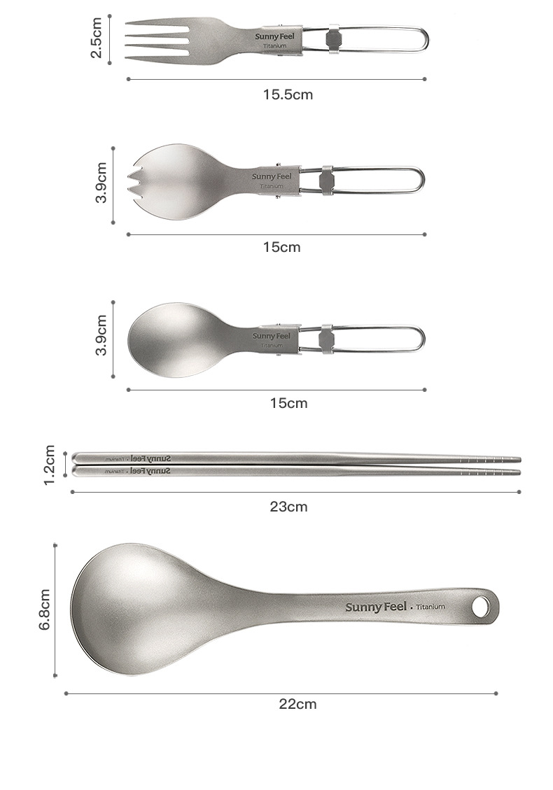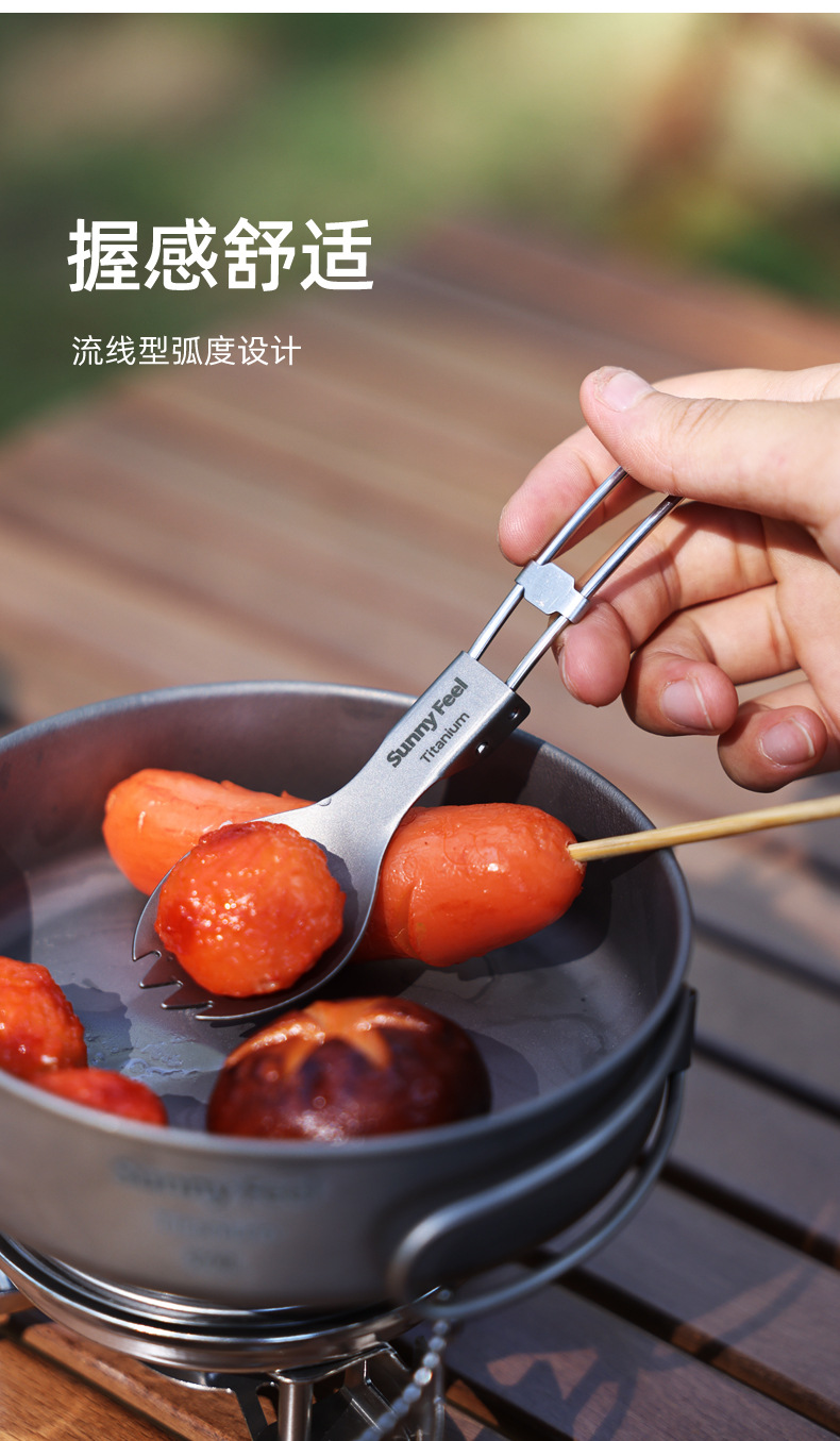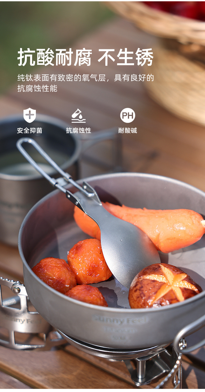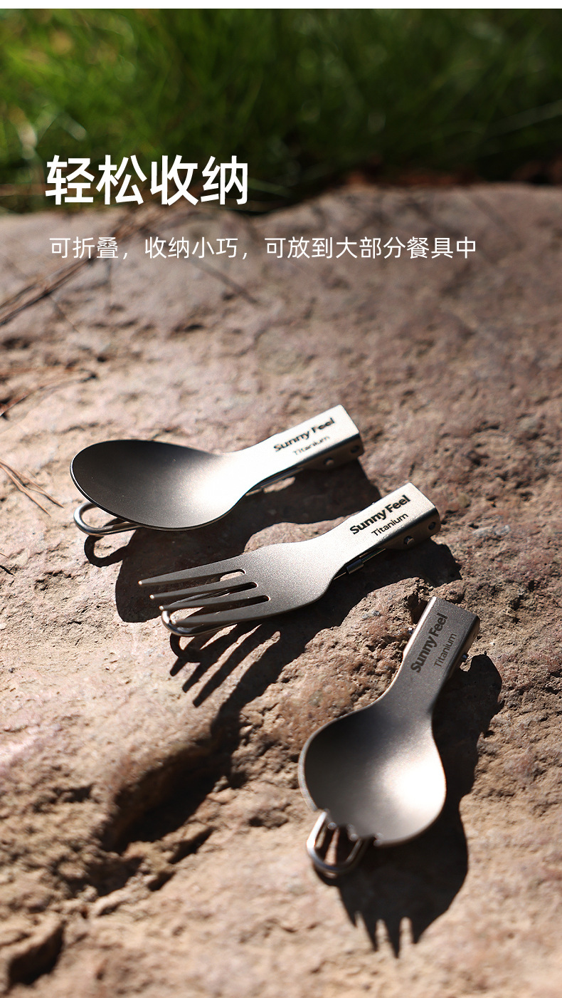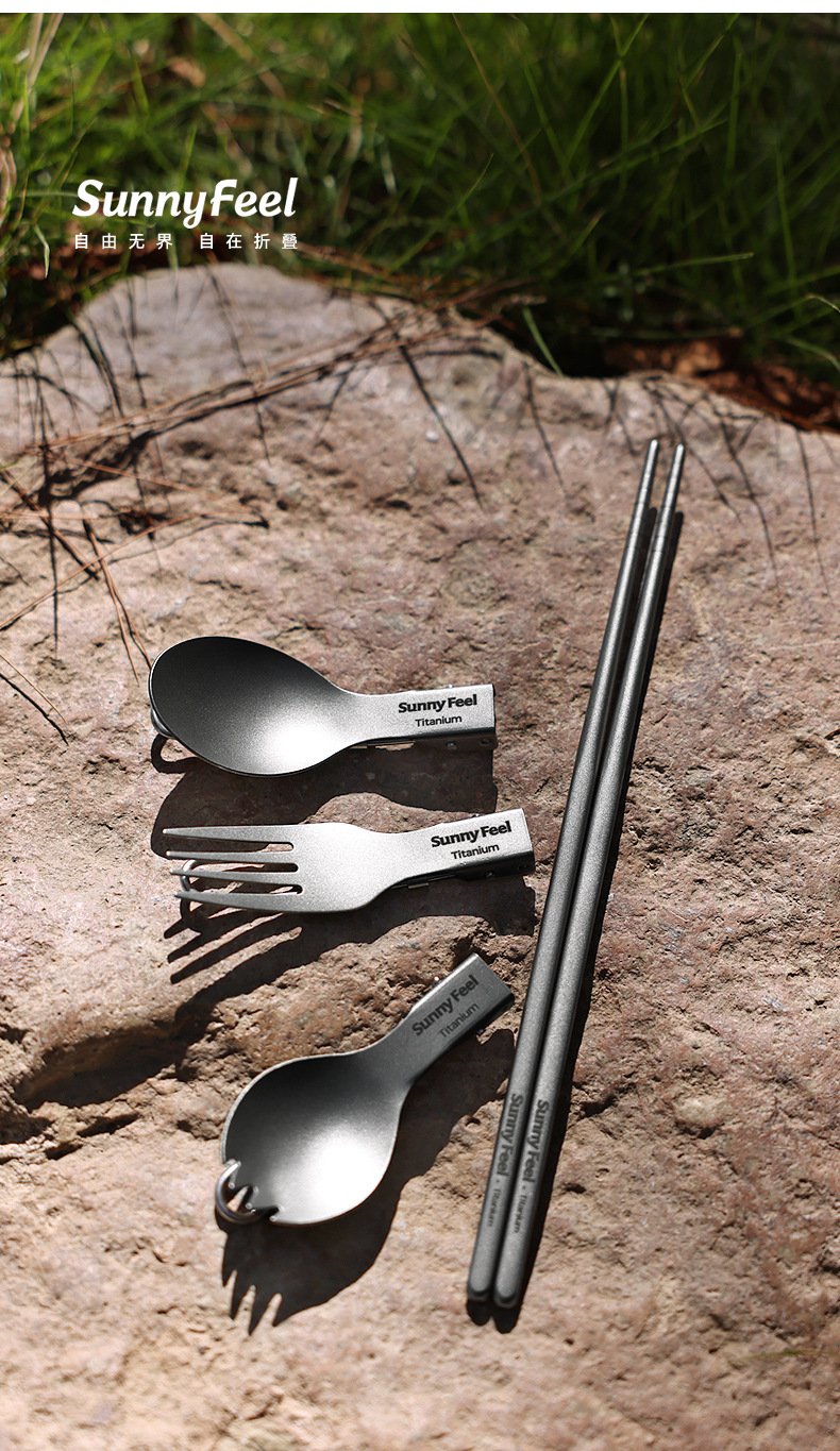 SunnyFeel山扉户外露营野餐纯钛餐具炊具_折叠汤叉勺筷子超轻便携