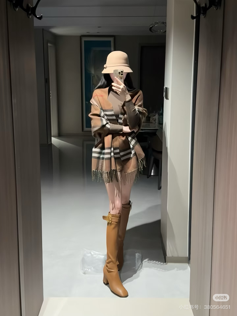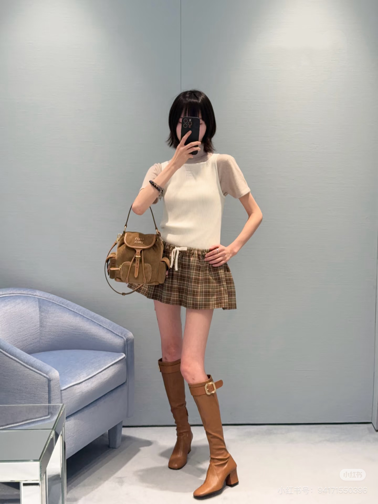 1210-1 渠道货 免带品 Miu弹力羊皮 粗跟长靴