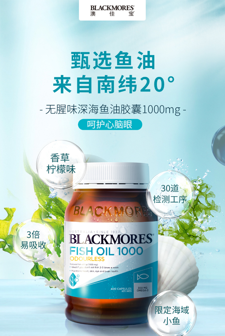 BLACKMORES 澳佳宝 无腥味鱼油1000mg400片