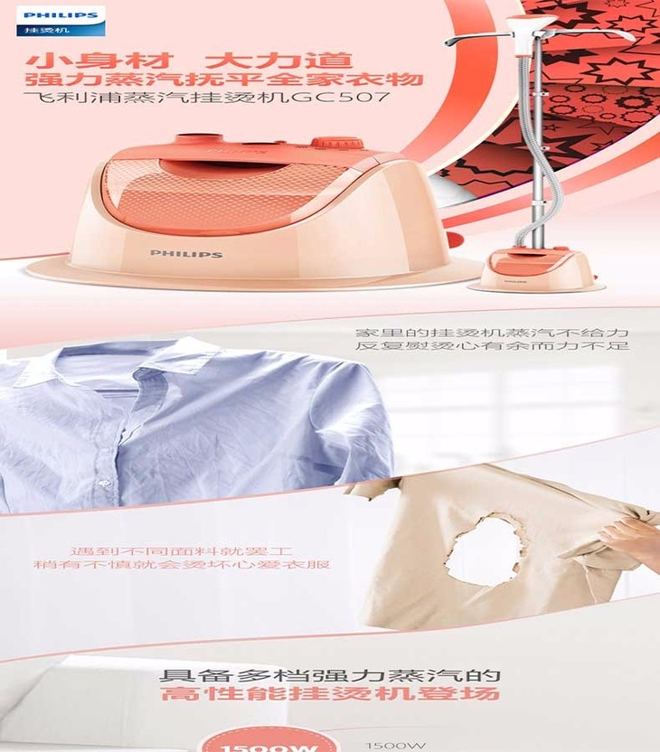 【保税仓】PHILIPS/飞利浦 蒸汽挂烫机家用三档1500W带衣架GC507