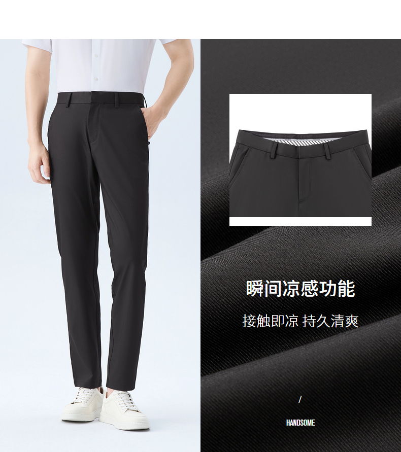 【瞬间凉感】柒牌男裤子微弹春季新款2026莱赛尔冰爽休闲梭织长裤 130H71970