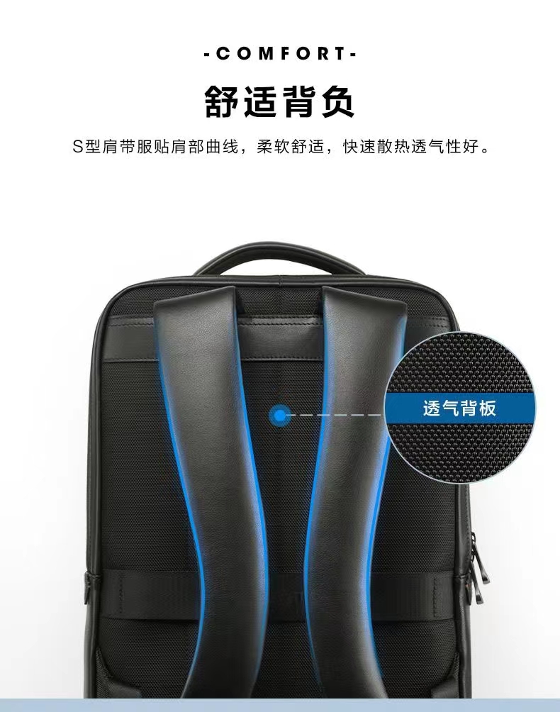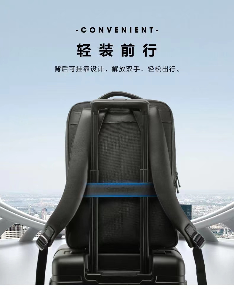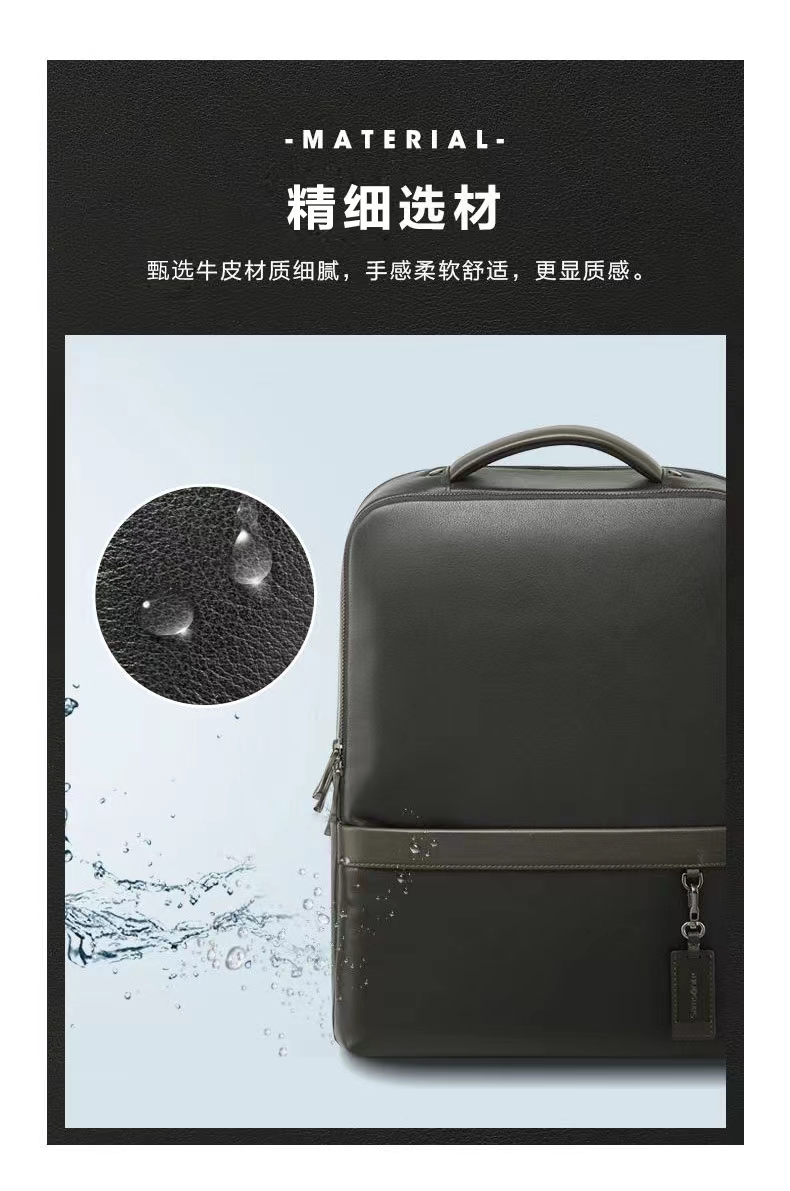 新秀丽经典简约牛皮革超纤革双肩包BC9*101