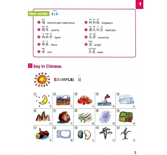 ― 為了使學生能更多地接觸漢字,更順暢地完成練習,在很多圖片旁都標註了漢字。