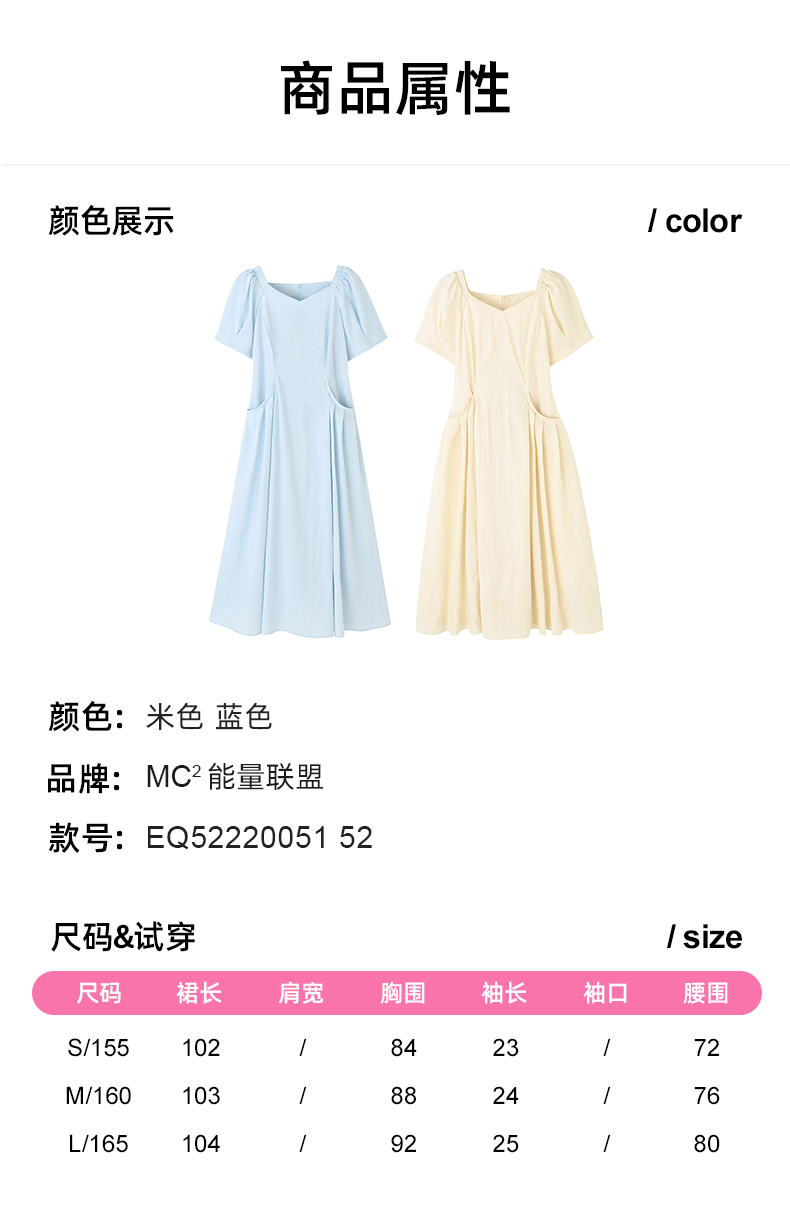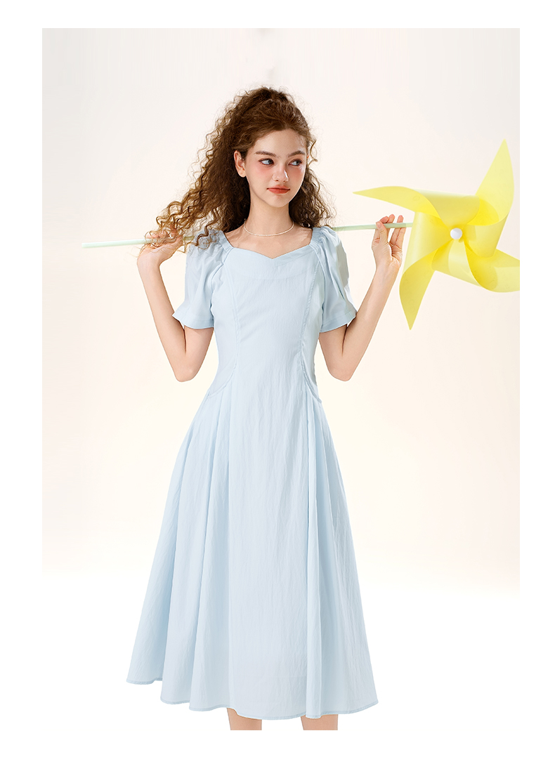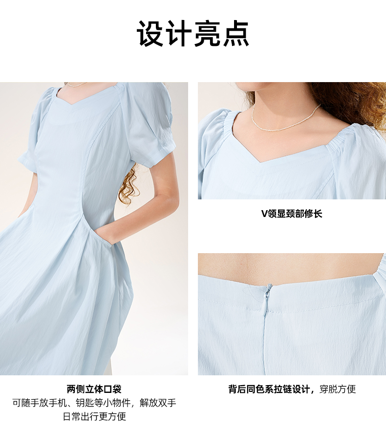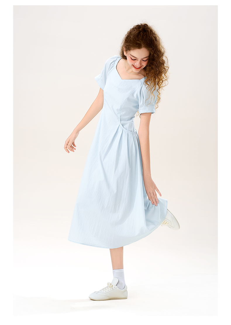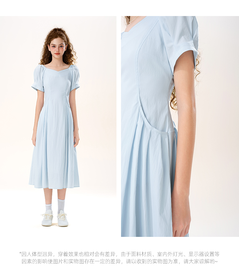 mc2V领腰部褶皱净色连衣裙女装夏季新款中长款今年流行巨好看