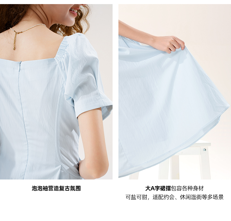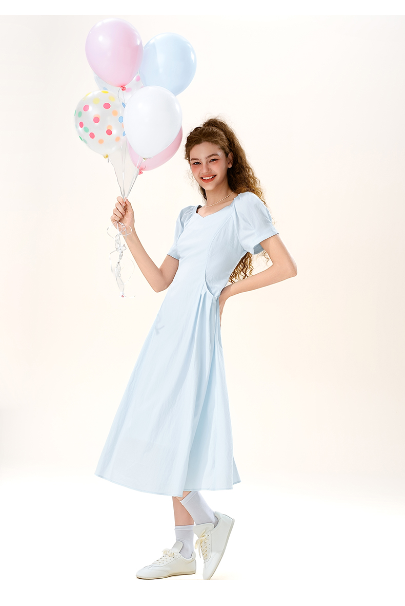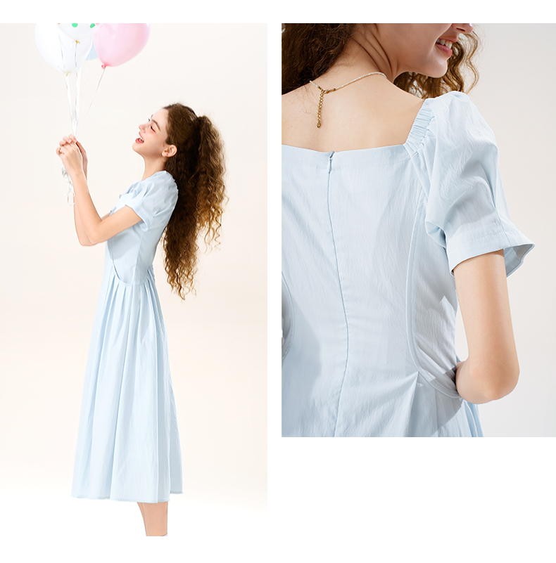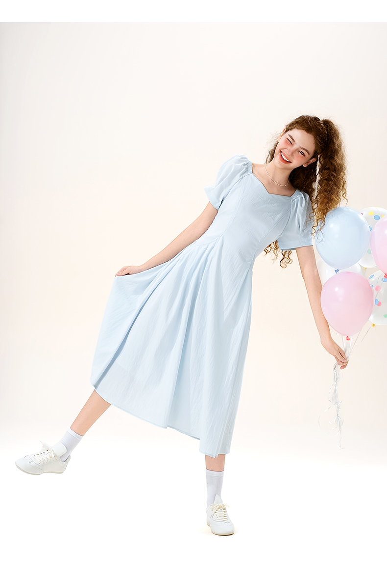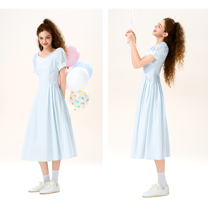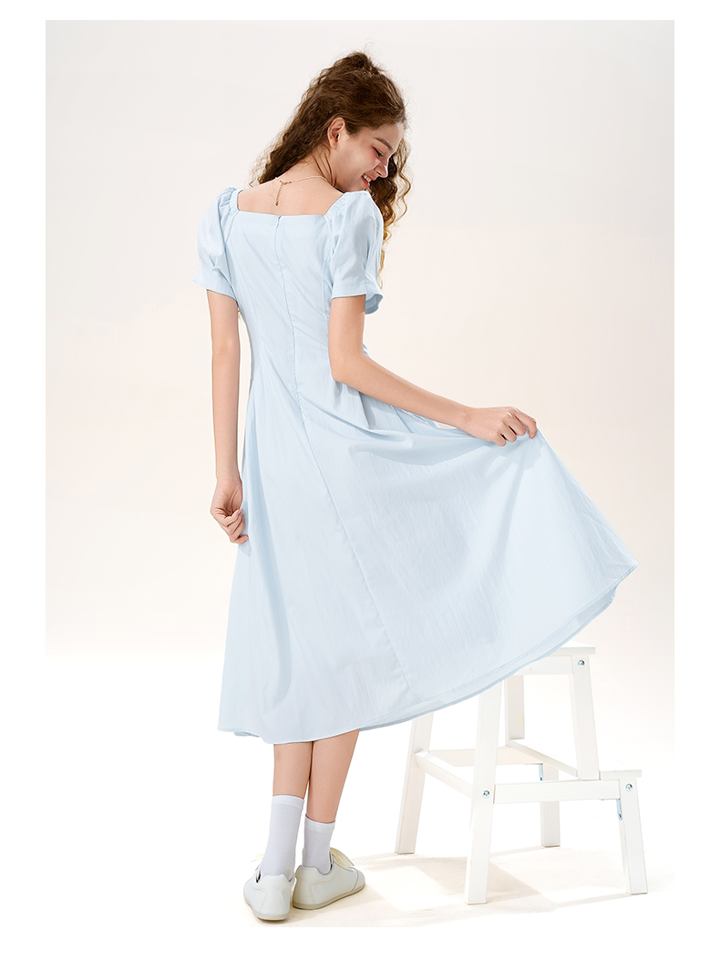 mc2V领腰部褶皱净色连衣裙女装夏季新款中长款今年流行巨好看