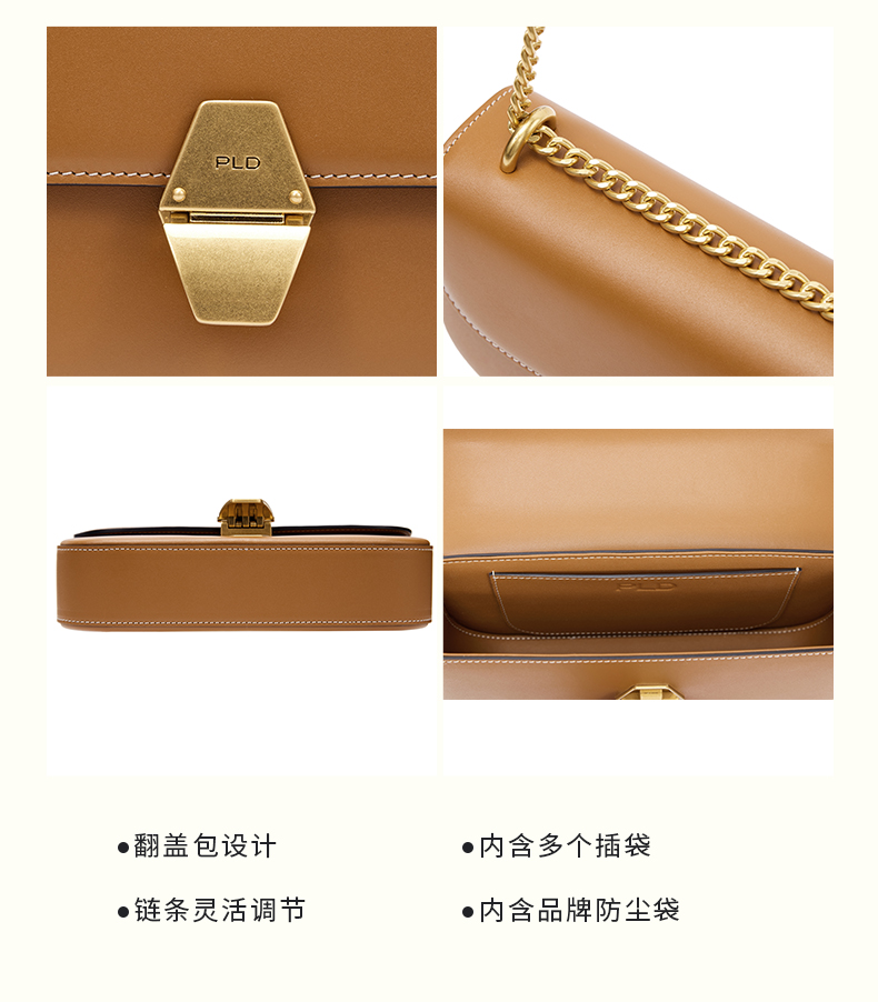 保兰德PLD 留白系列真皮女包小方包单肩包斜挎包包女