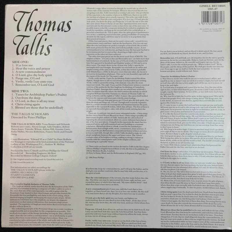 LP黑胶唱片 托马斯·塔利斯《英语赞美诗全集》 塔利斯学者合唱团