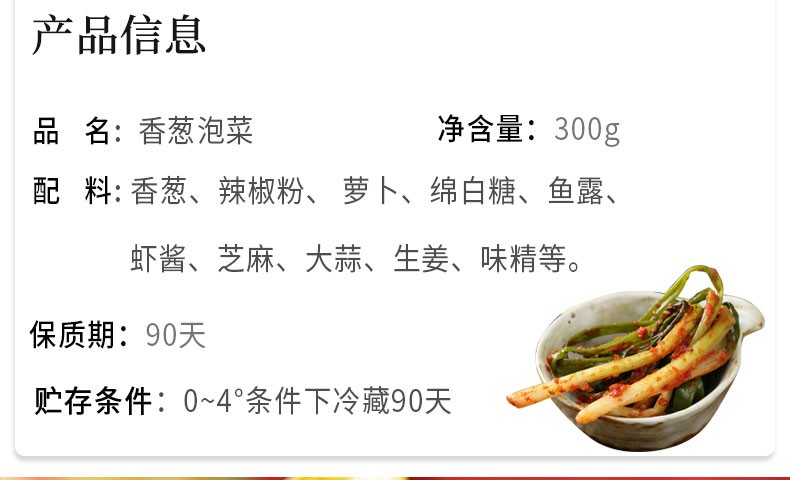 【直播专享】金刚山香葱泡菜300g*袋 拍一发三 包邮