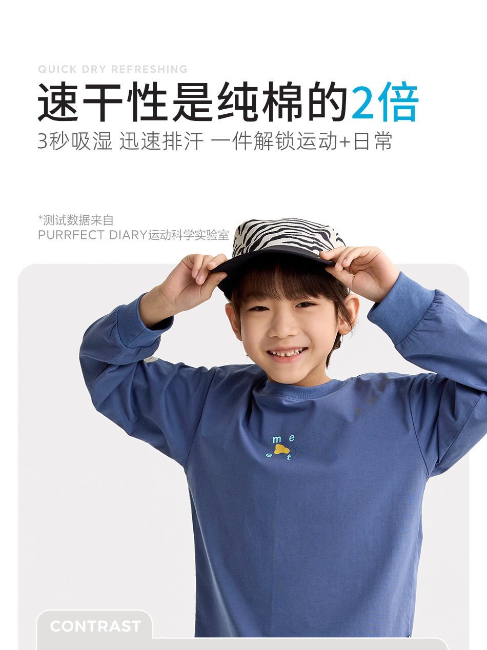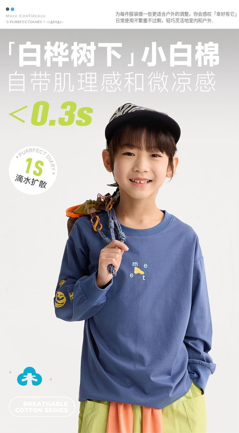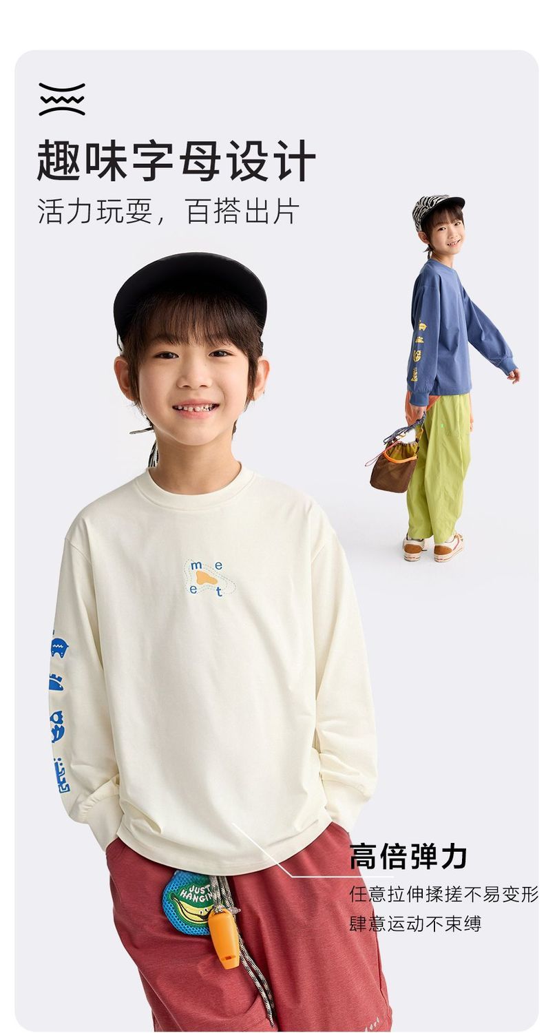 咕噜日记儿童简约百搭印花T恤男童凉感长袖2026中大童索罗娜快干