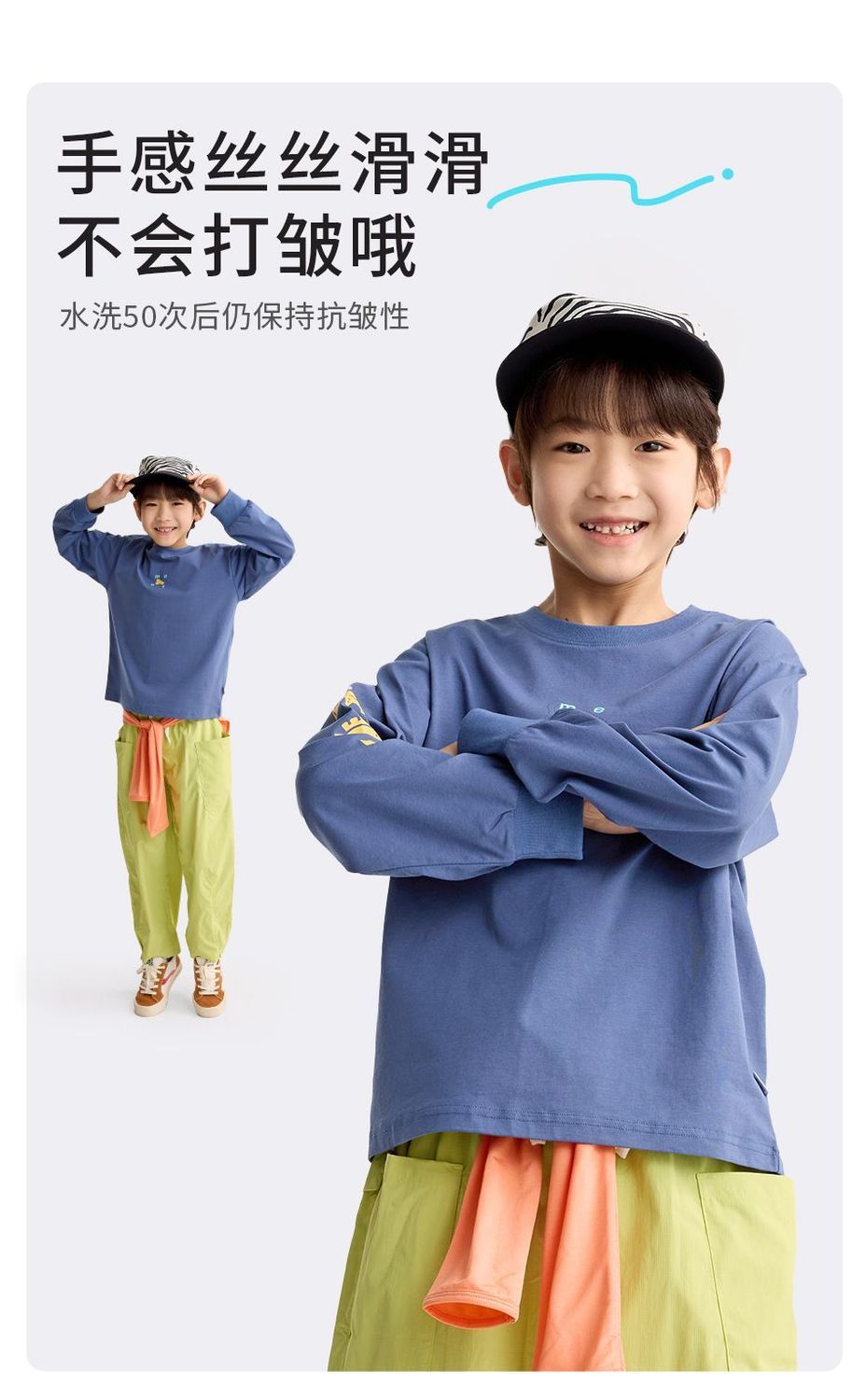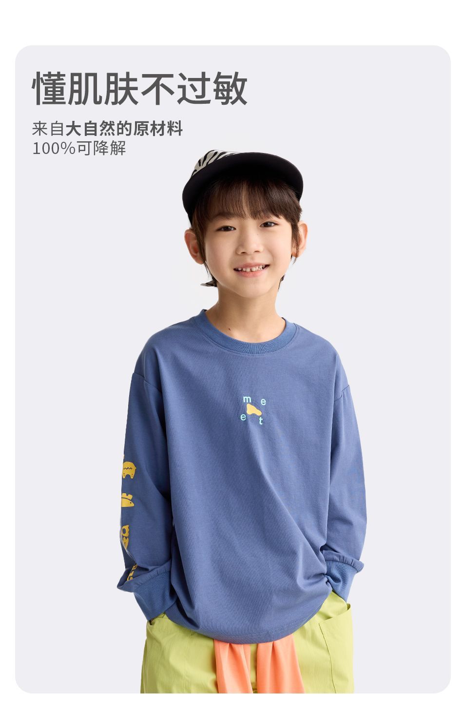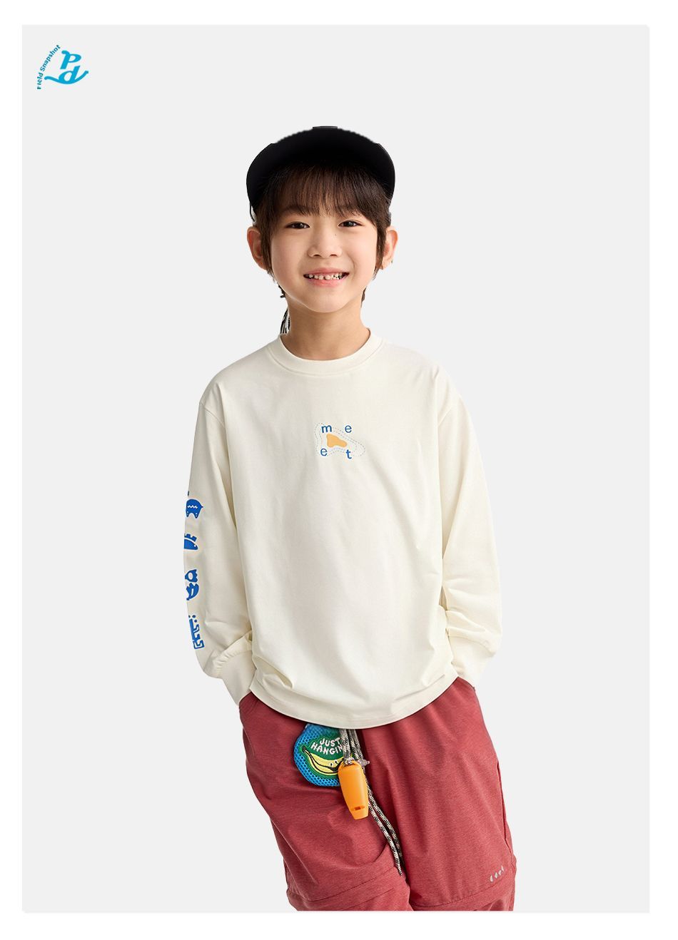 咕噜日记儿童简约百搭印花T恤男童凉感长袖2026中大童索罗娜快干