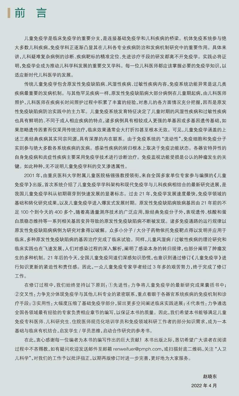 儿童免疫学 第2版 赵晓东 儿童临床免疫学器官系统疾病的免疫机制和诊疗手段 儿科医师参考书 人民卫生出版社9787117330022
