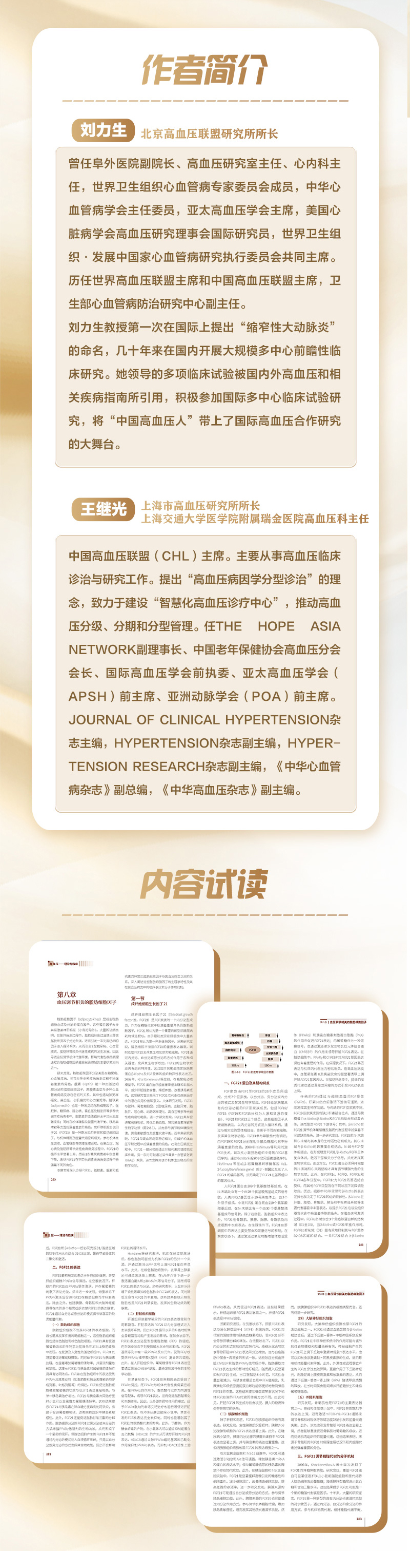 本书是一部全面反映现代高血压及相关疾病最新成就的专著。内容丰富,各篇章既独立成文又重点突出,既一脉相承又相互关联,涵盖了高血压研究的方方面面。书的总体框架力求清晰明了,理论部分充分体现研究的深度和拓展的广度;临床部分突出定义、概念和实际操作的重点和难点,具有指导性和实用性;并以跨学科的融合方式呈现国际和国内高血压研究的最新进展。本书的读者对象为从事高血压临床工作的医务人员、科研人员、医学生及关注公共卫生的群体,希望专著能够给大家提供工具书样的指导和参考,这也是刘力生教授倾注心血编写本书的初衷。