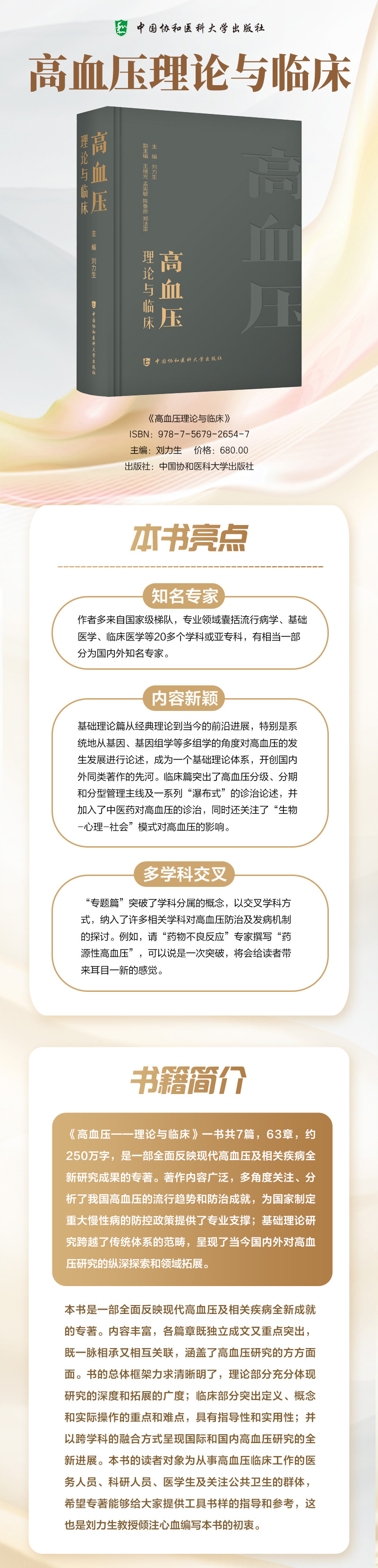 高血压理论与临床 刘力生 主编 一部全面反映现代高血压及相关疾病最新研究成果的专著 9787567926547中国协和医科大学出版社