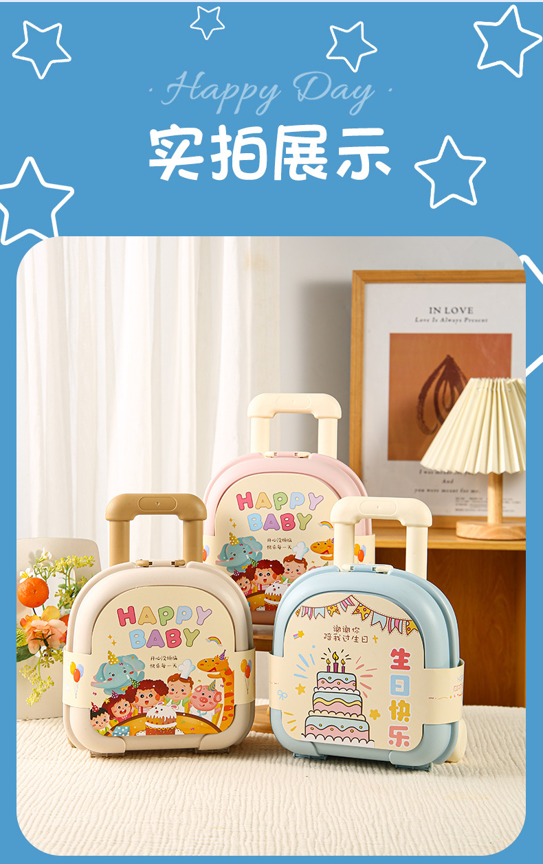 【顺滑不卡顿!加固耐用】儿童手提拉杆箱男生女生十周岁生日礼品盒宝宝满月周岁喜糖盒子。xb
