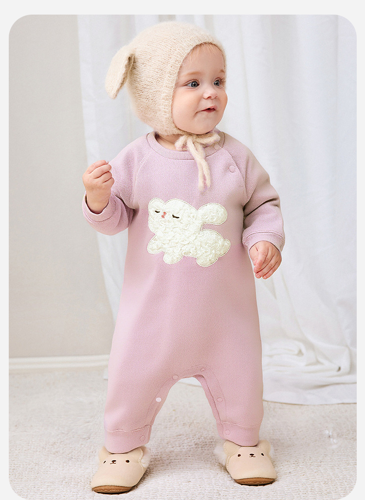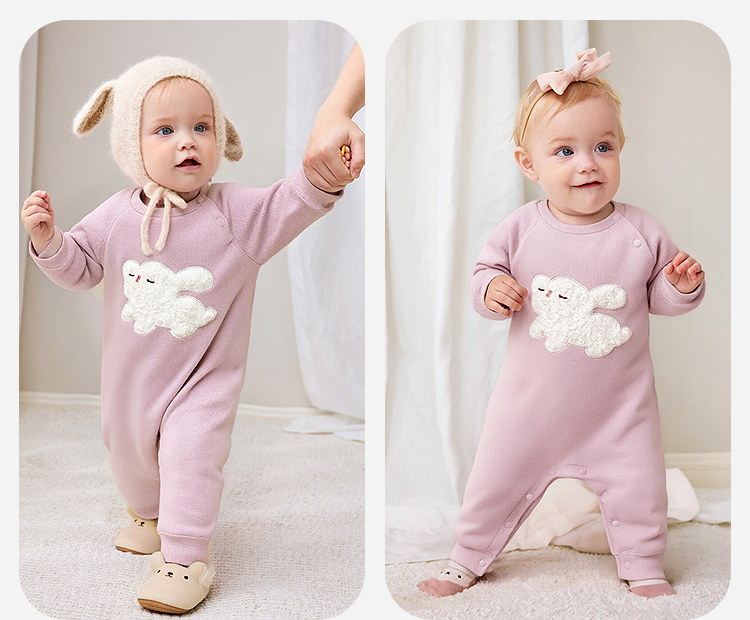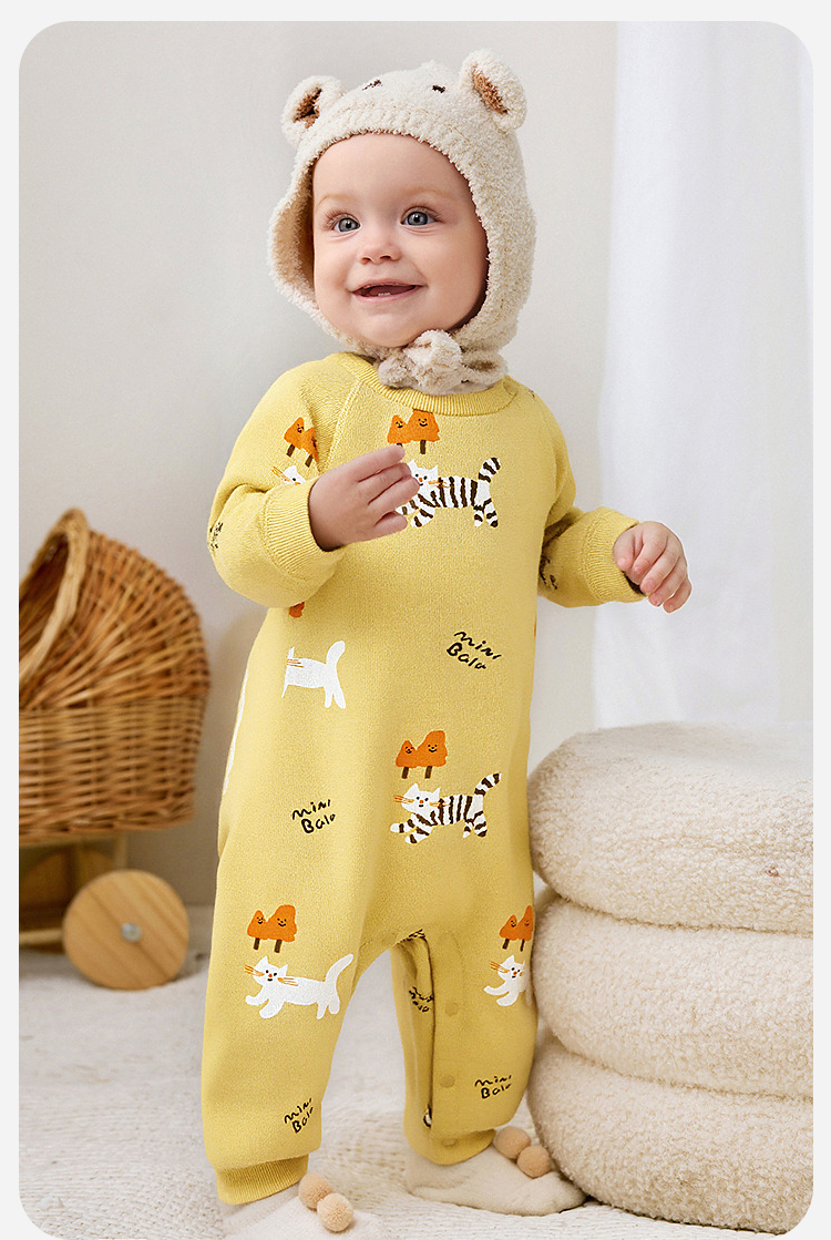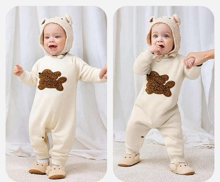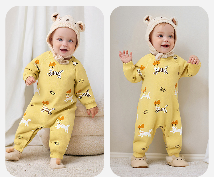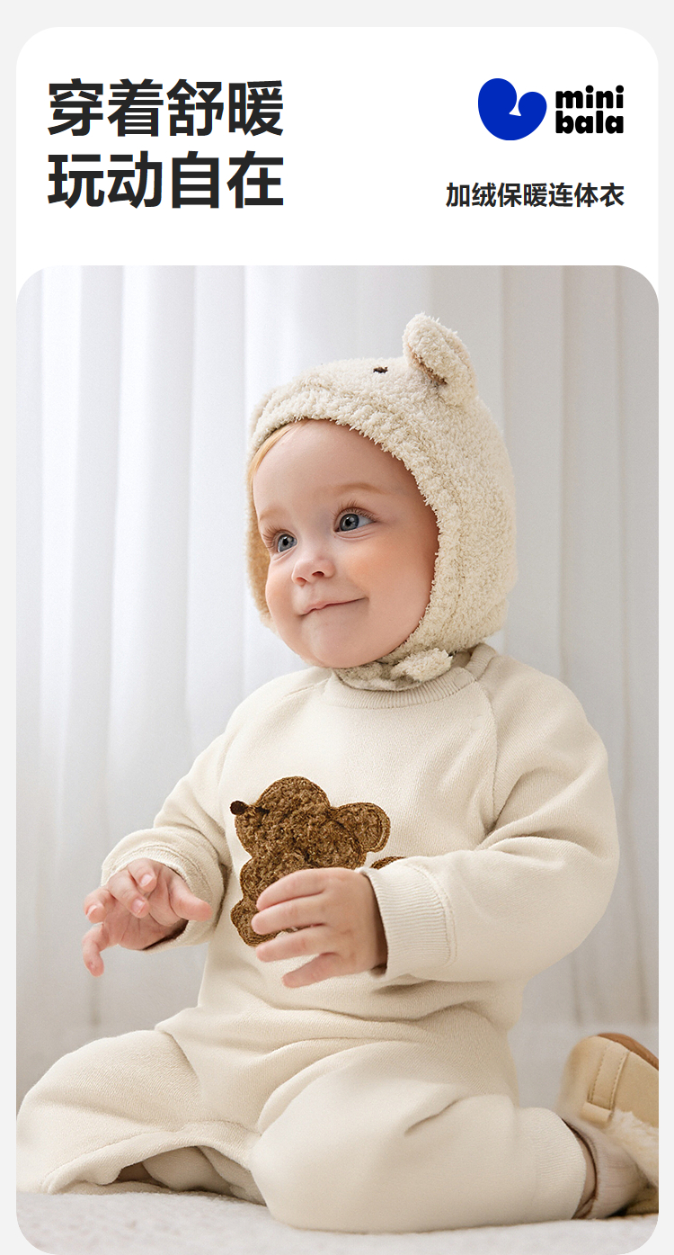 迷你巴拉婴儿加绒衣服新生儿宝宝保暖连体衣爬服2025年秋冬款