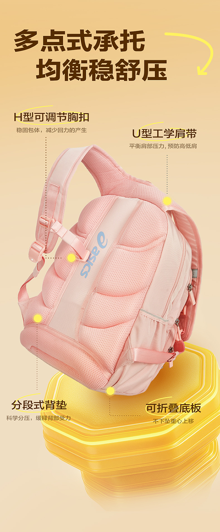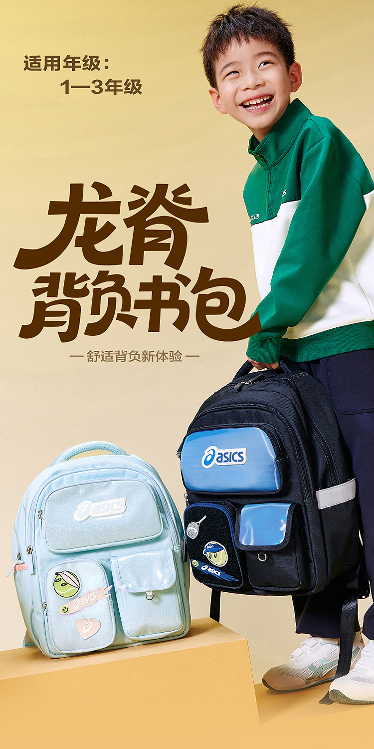 ASICS/亚瑟士儿童2025年新款大容量减负书包防水耐磨趣味双肩包