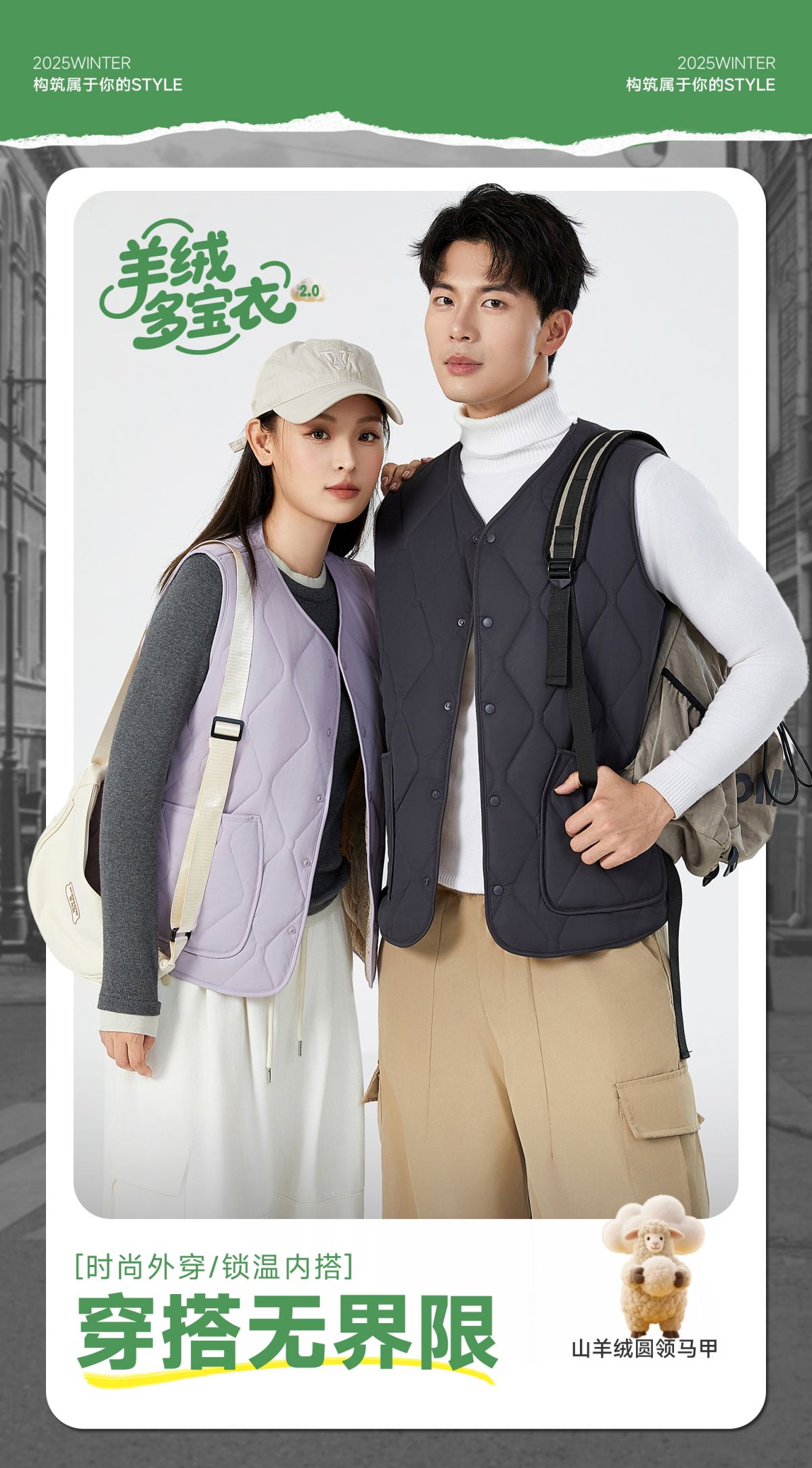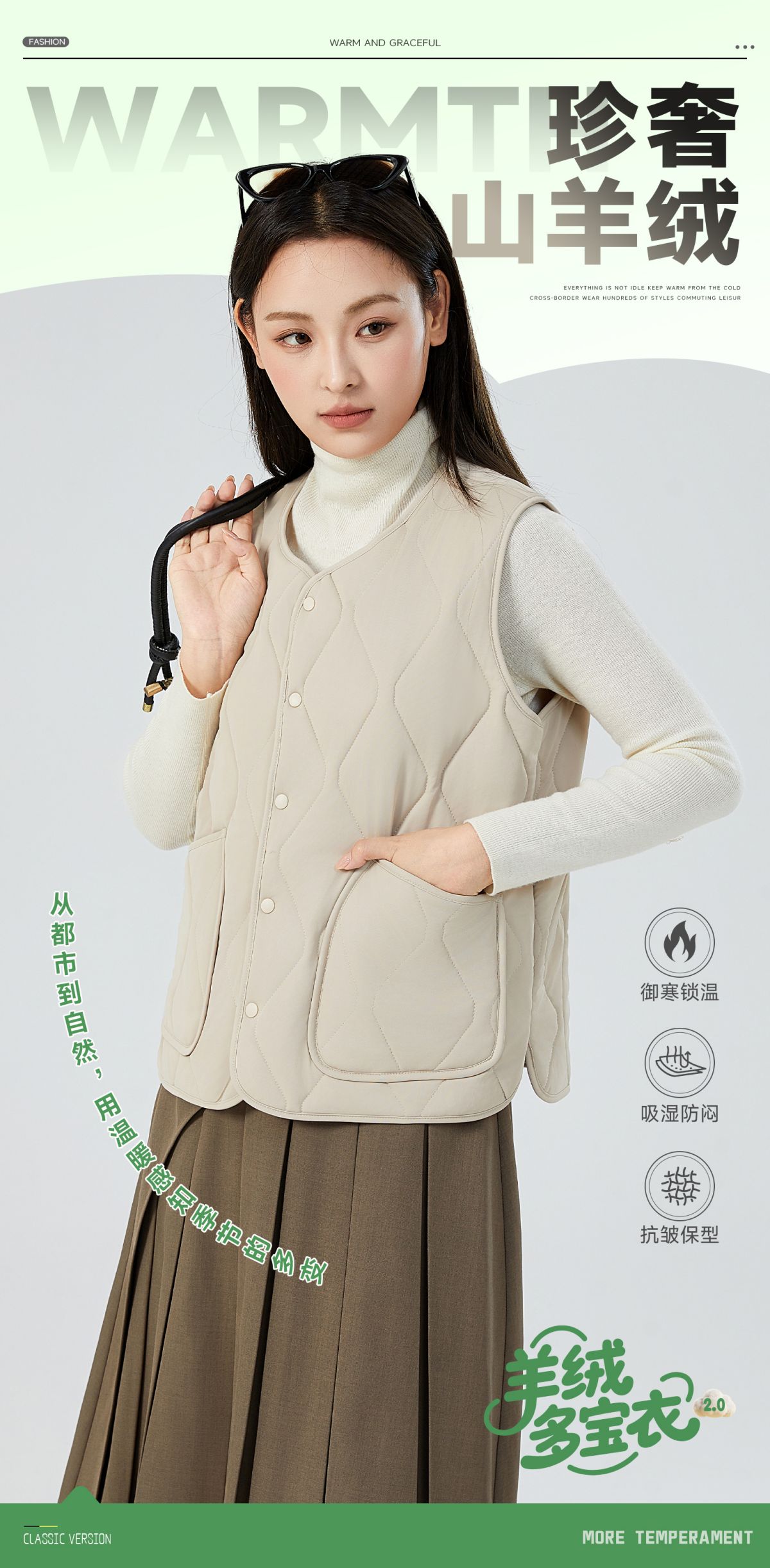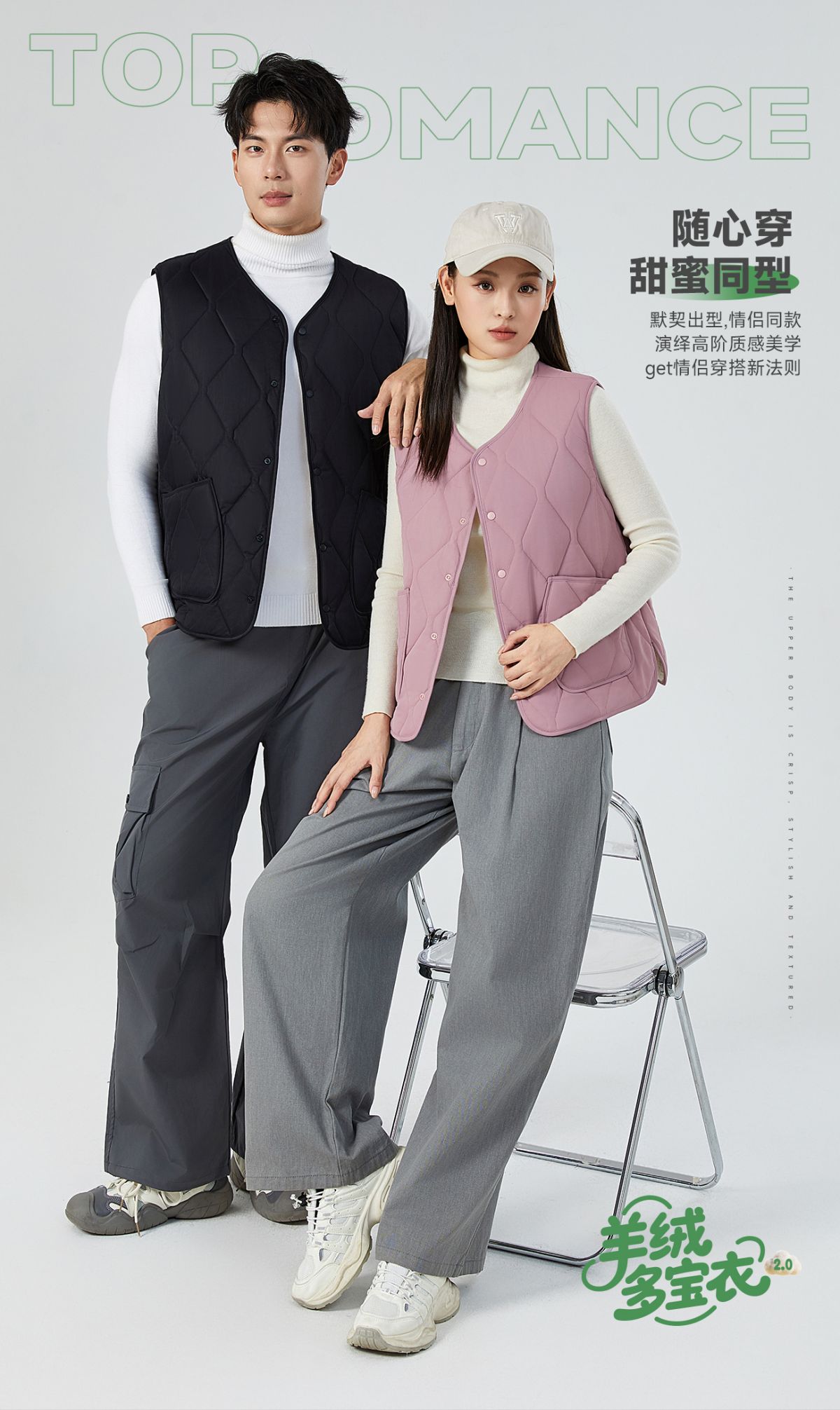 雪中飞山羊绒圆领马甲 男女同款 10A级抑菌 时尚外穿 锁温内搭 7701/8701