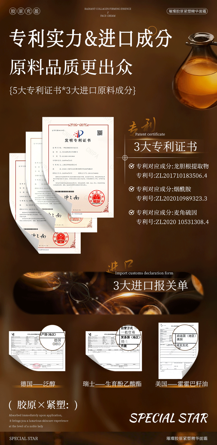 ✅三大专利证书➕三大优质进口成,产品原料品质出众